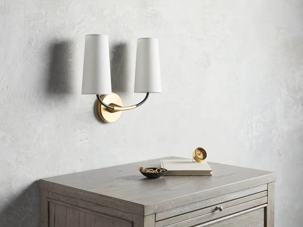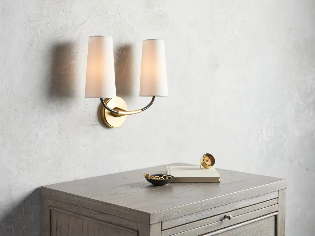 Classically styled to accentuate modern living spaces, our Lennon Sconce is finished with tones of bronze and antiqued brass. Chic linen shades add softness for balance and a warm, comfortable aesthetic.