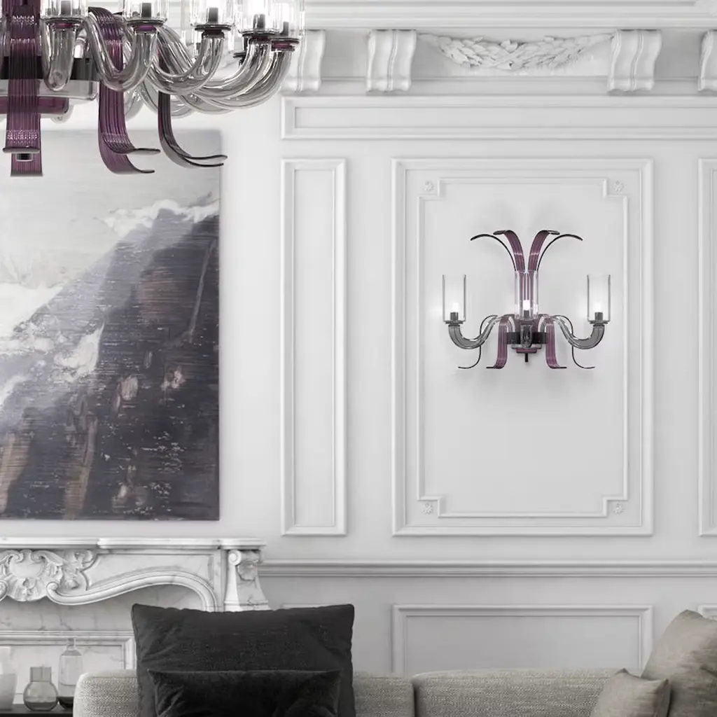 Leonardo 3-Light Gray And Purple Murano Glass Wall Lamp