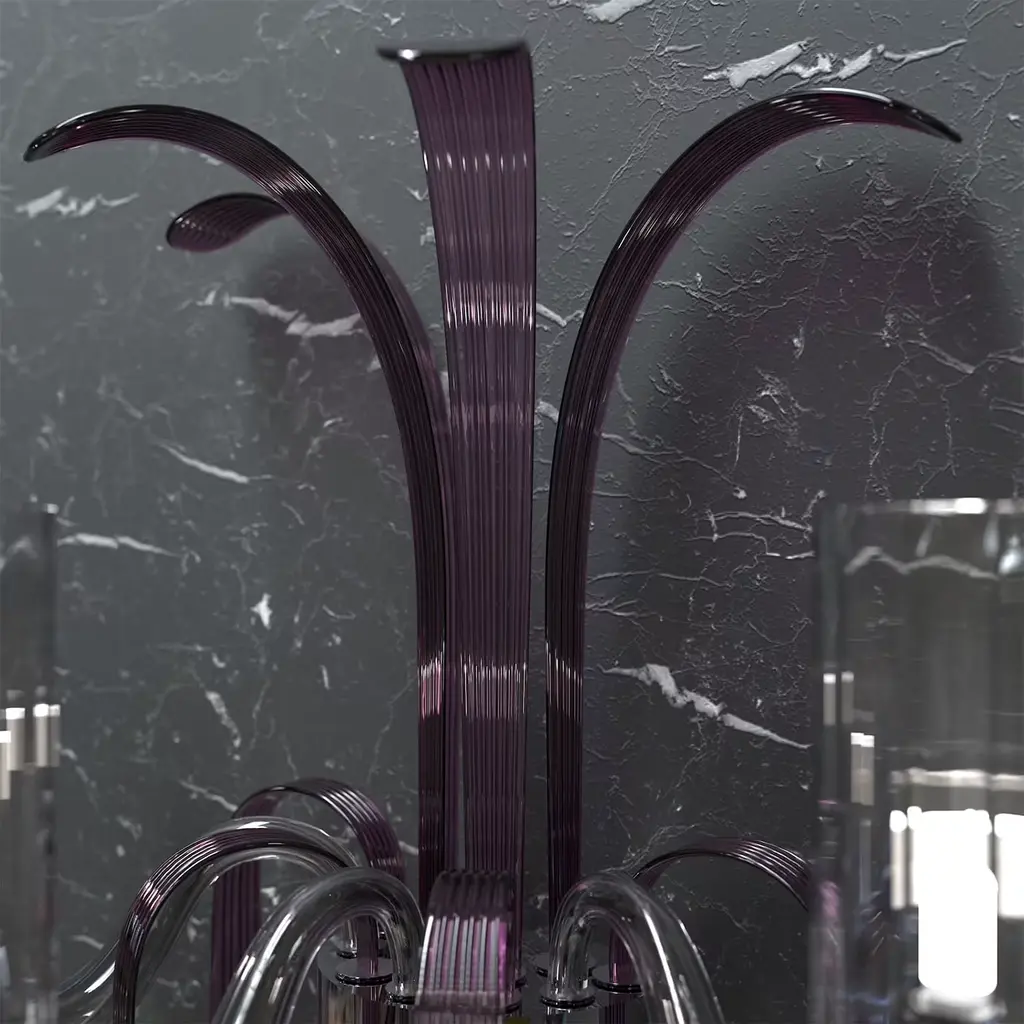 This 3-light wall lamp is entirely handmade in our furnace in Murano Island by master glassmakers according to ancient and secret traditions handed down from father to son since 1300. For centuries, Murano glass has been the most famous glass in the world and one of the most desired Made in Italy products for furnishing luxury environments. Since the dawn of time, Murano glass chandeliers and furnishing objects have decorated the most prestigious homes and have given an unmistakable light to any room. Any of our Murano Glass lighting fixtures is always unique and unrepeatable, the result of artisan tradition and advanced industrial techniques. For this reason its origin is certified by the Trademark of the Italian law “Vetro Artistico® Murano”. GLASS COLOR: Purple and Gray, METAL FINISHING: Chrome, CUSTOMIZATION: Customizable in glass colors, metal finishings.
