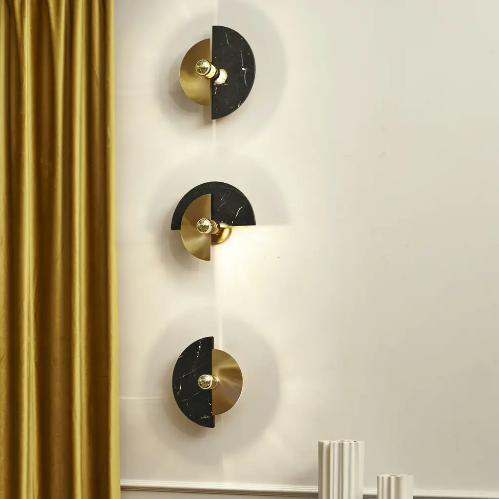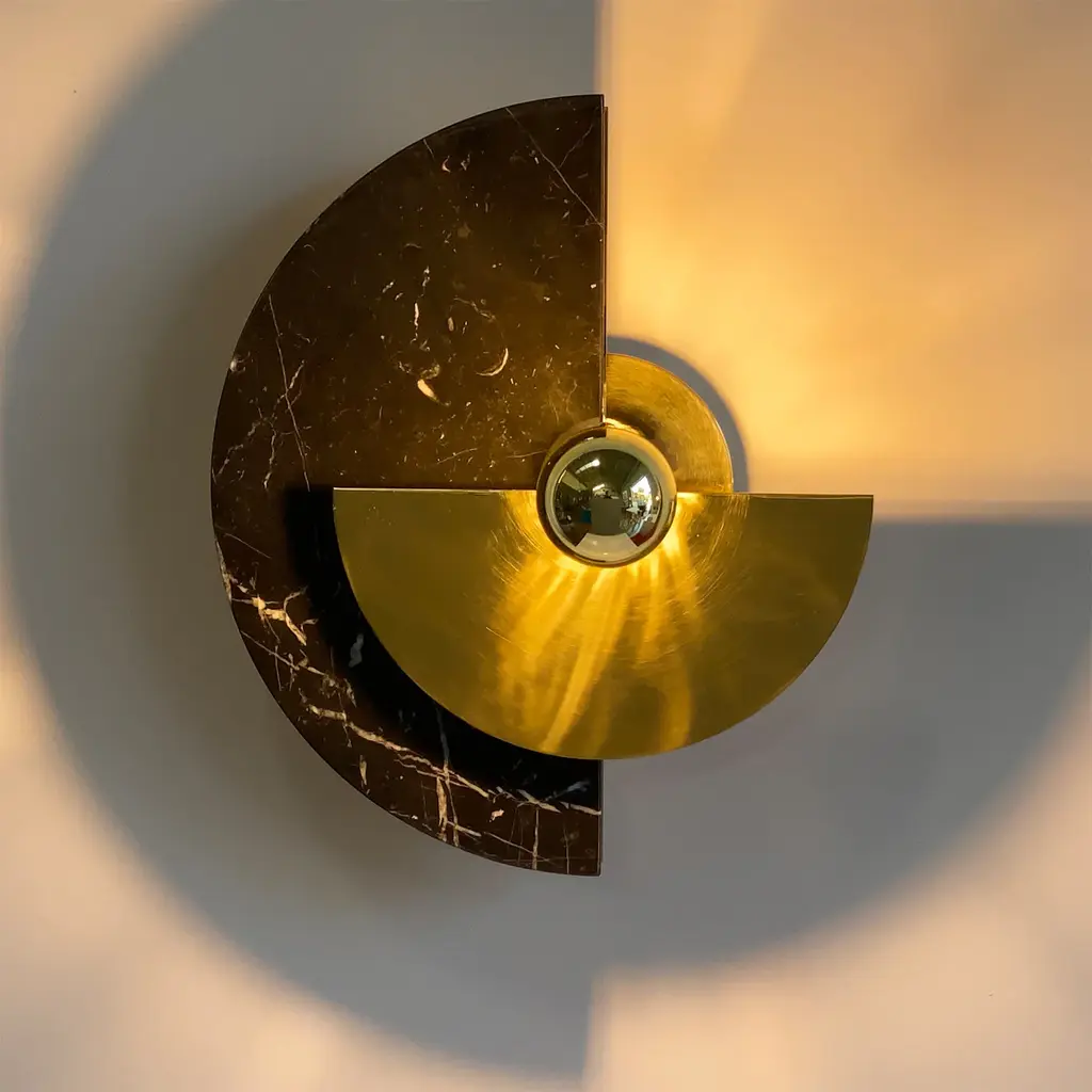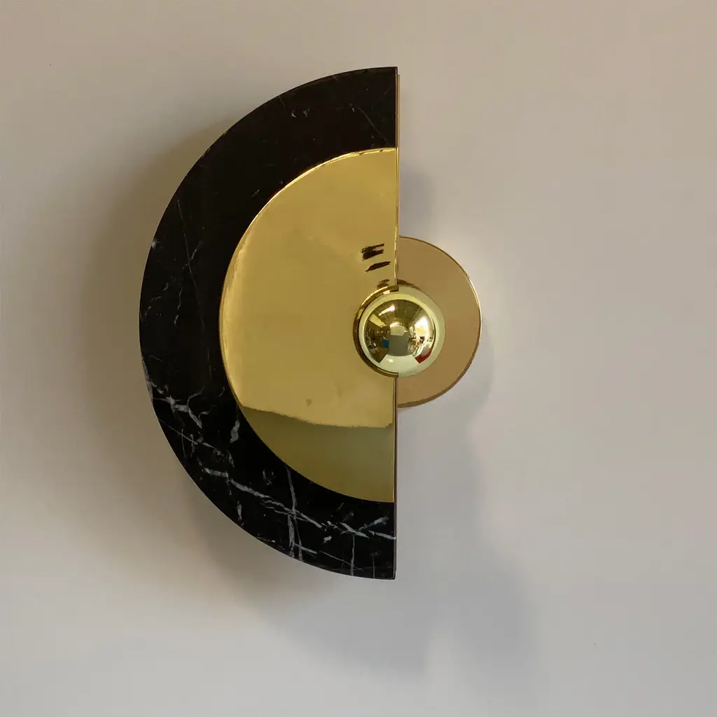 "Levante" Round Polished Brass And Marble Wall Sconce