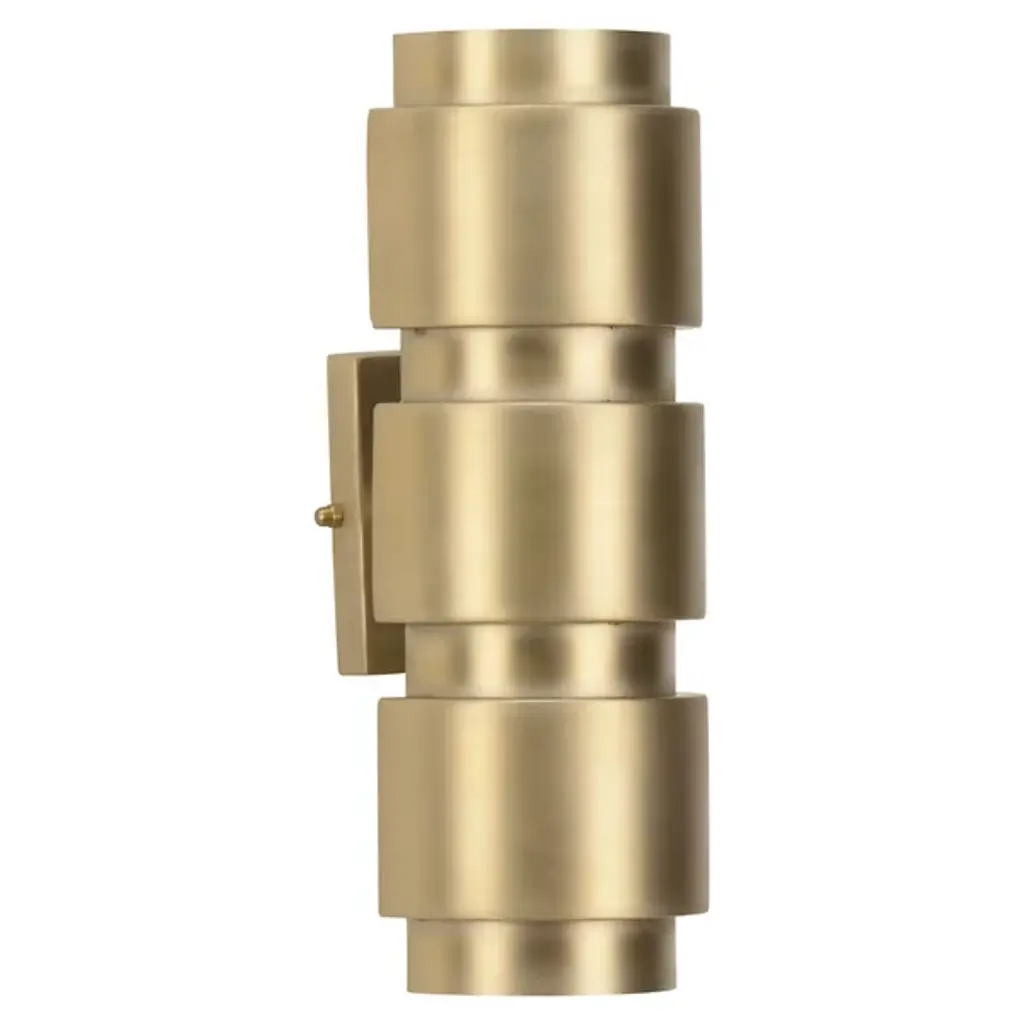 The Lewinger Wall Sconce from Wildwood features a distinctive stacked metal design. Its cylindrical sections create a fascinating dimension that brings architectural interest to any space. This metal wall light offers a fresh take on minimalist design while maintaining a sense of luxury. Its unique profile works wonderfully in pairs flanking mirrors or artwork but stands equally confident as a solo accent. This sconce is perfect for entryways, hallways, or living spaces where you want stylish yet functional lighting.