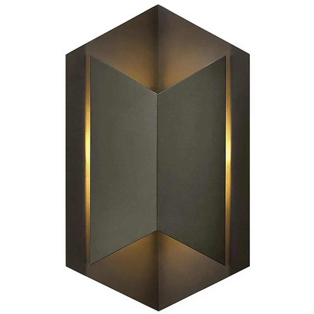 With its bold geometric form and haunting glow, the Lex LED Outdoor Wall Sconce from Hinkley Lighting can enhance any outdoor setting. Its bold, rectangular silhouette consists of two distinct Aluminum panels that box-in an integrated LED light source. Once lit, a warm ambient light filters both up and down, as well as through the gaps between panels, creating a stylishly diffused lightscape entirely free of glare and hotspots.