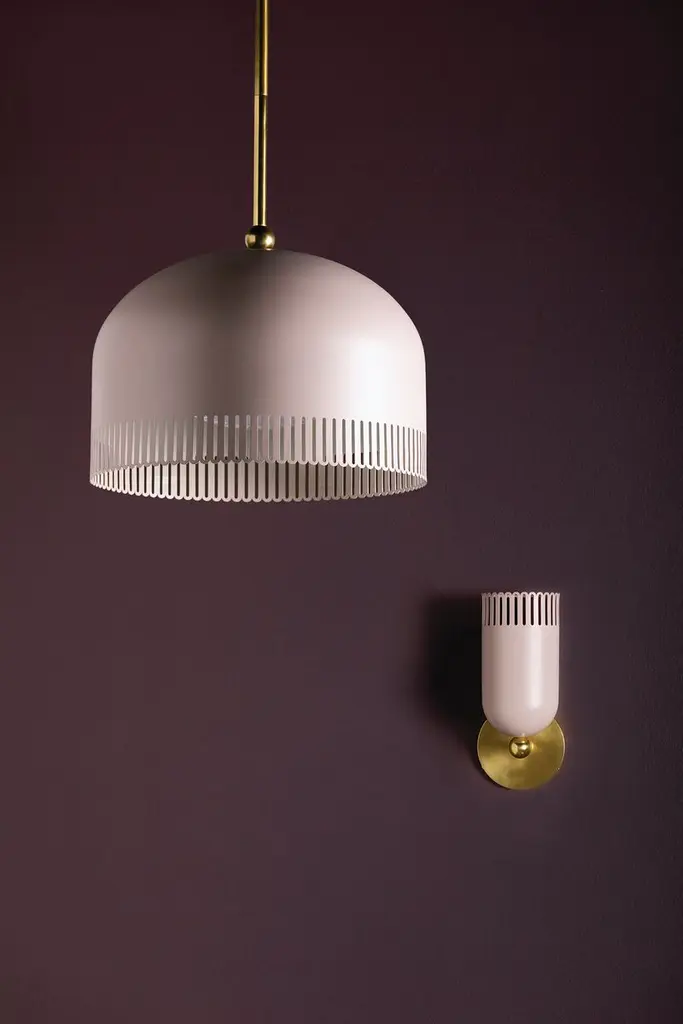 A visual treat, Liba features classic forms updated with eye-catching details. Known for her color sensibility, Zoe Feldman has added a playful touch to this fixture with its unique hue. The warm neutral creates a calming, inviting presence which is complemented by the framework. The slender scalloped edges of the fixture allow light to shine through while adding a whimsical note. Available as a 1 or 2-light sconce and a pendant in two sizes, Liba is a thing of beauty. Part of our Zoe Feldman collection.