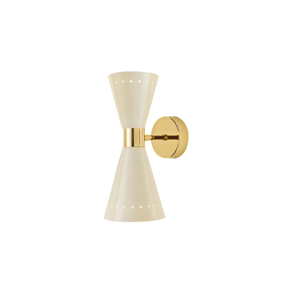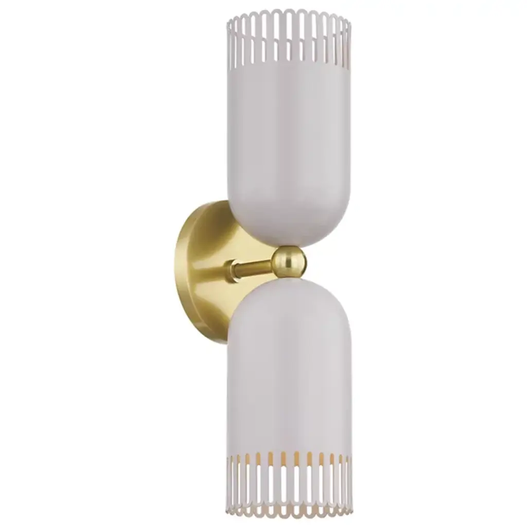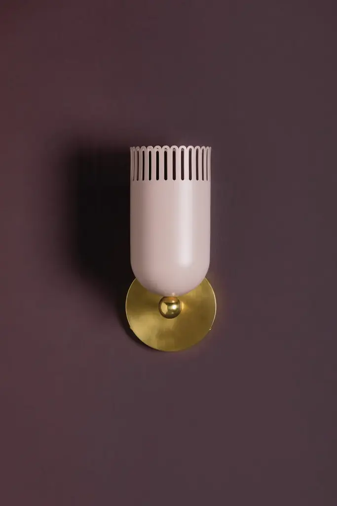 A visual treat, Liba features classic forms updated with eye-catching details. Known for her color sensibility, Zoe Feldman has added a playful touch to this fixture with its unique hue. The warm neutral has a hint of pink that creates a calming, inviting presence which is complemented by the Aged Brass framework. The slender scalloped edges of the fixture allow light to shine through while adding a whimsical note. Available as a 1 or 2-light sconce and a pendant in two sizes, Liba is a thing of beauty. Part of our Zoe Feldman collection.