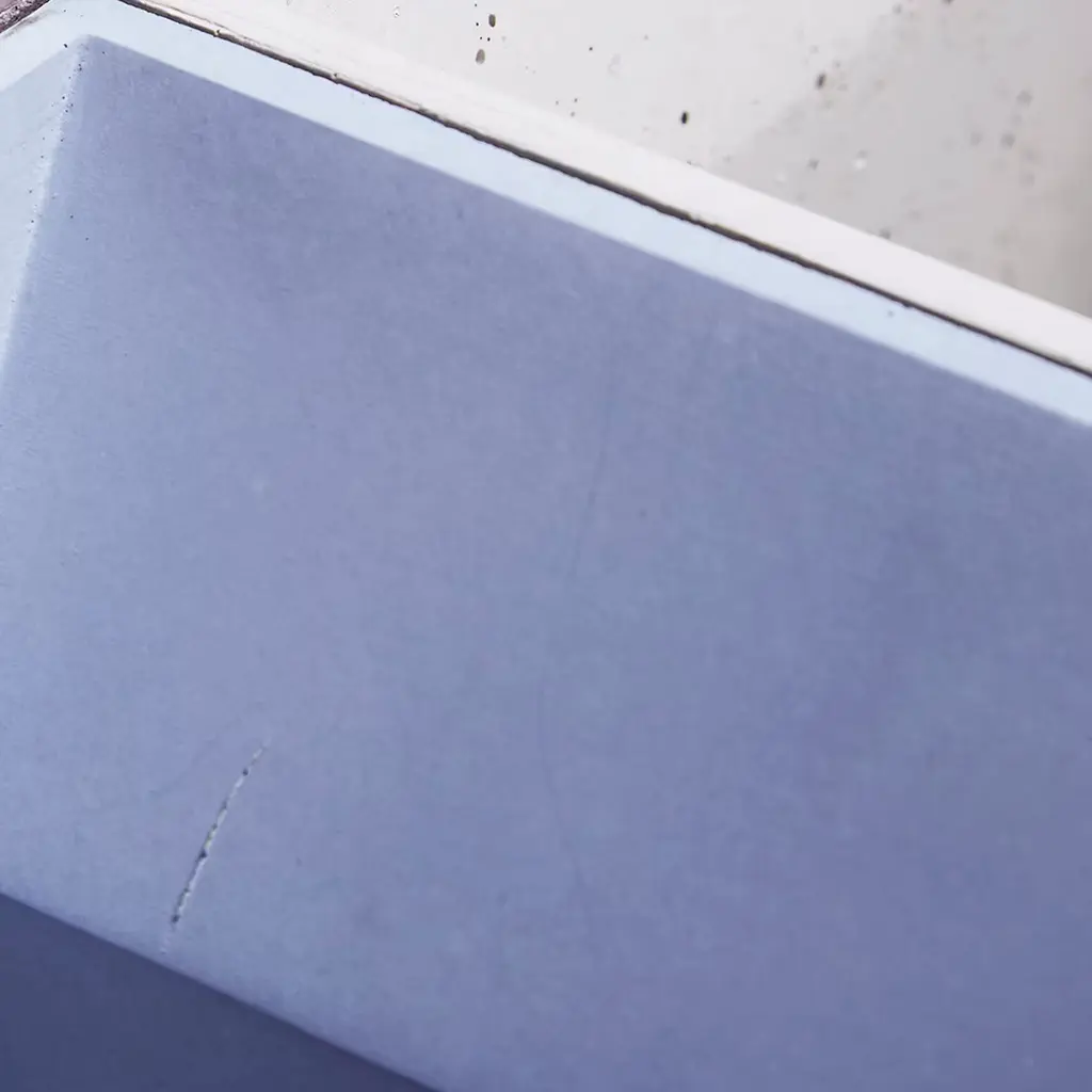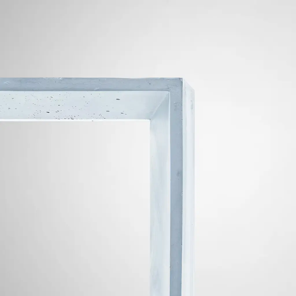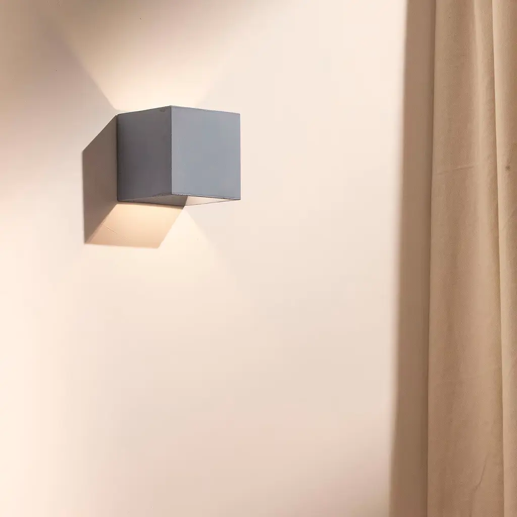 This elegant and minimalist sconce is part of a collection handcrafted of ultra thin concrete in Plato's workshop in Rome. The rigorous cubic shape is tinted in a delicate light blue color that will fit a modern, pastel-palette children's bedroom, bathroom or study. Flanking an entryway mirror or a contemporary bed, this piece will set a sophisticated tone, with its acrylic glass bottom diffusing a soft light. Hardwired and weighing 1.1 kg, this piece is suitable only for interiors. G9 max 10W LED light bulb not included.