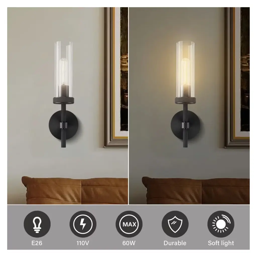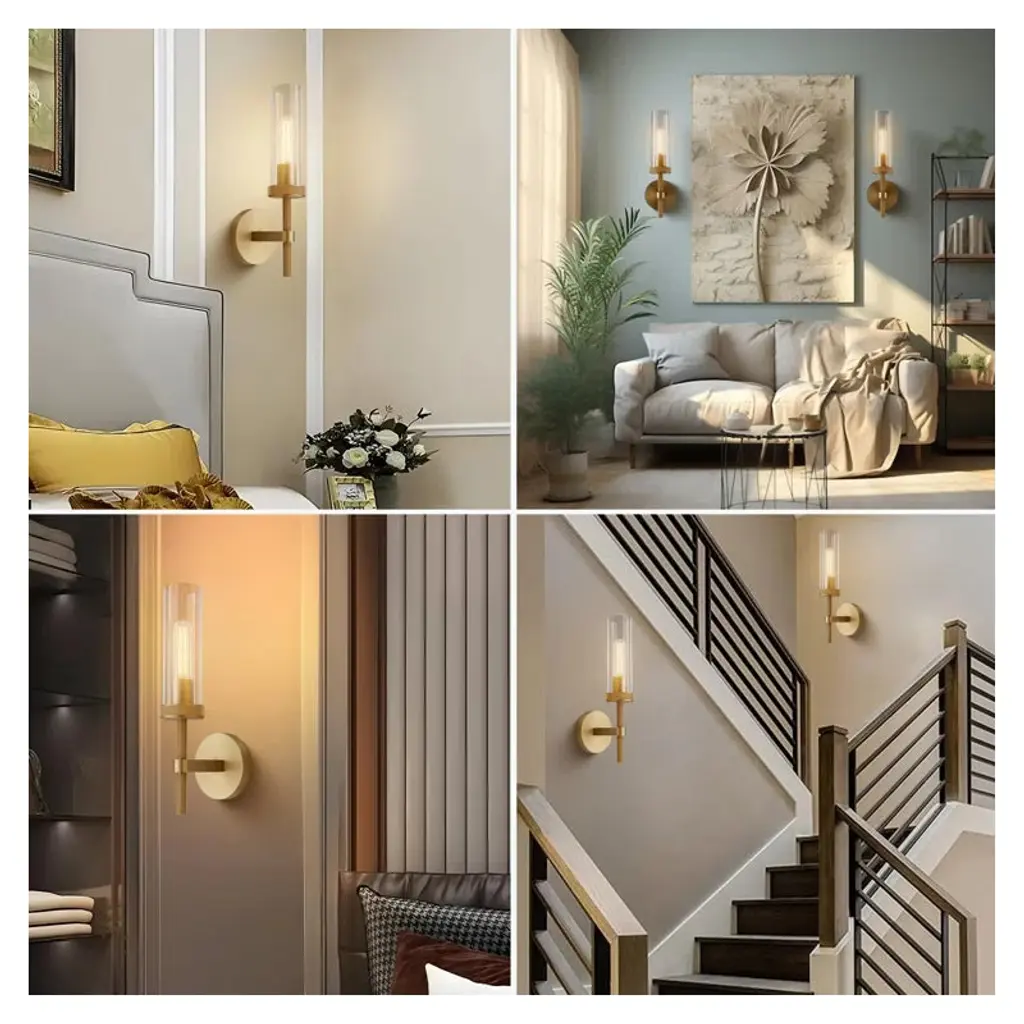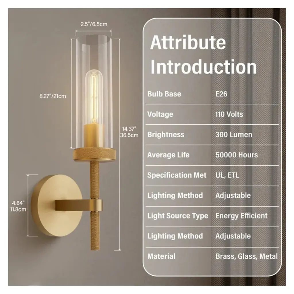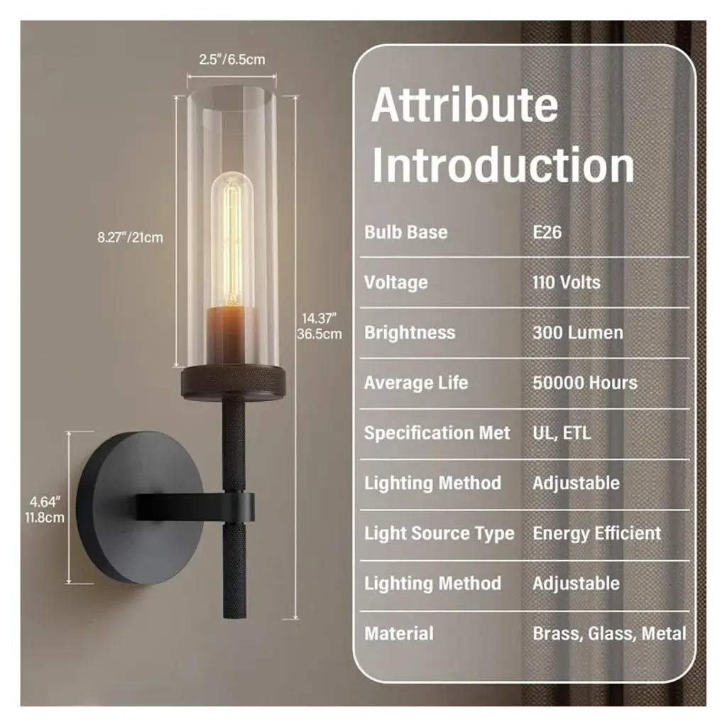This wall light has a modern and industrial design style, elegant and beautiful. This wall mount light is made of high-quality materials, does not easily rust and fade, and has strong corrosion resistance. The thick clear glass shade is used, which is not easy to break and has strong light transmittance, softening lighting care of eyes health, illuminating various spaces in your house. This wall sconce has a modern and industrial design style, elegant and beautiful. The bathroom sconce comes with one bulb, and this bathroom vanity lighting is made of high-quality materials(pure copper and glass), does not easily rust and fade, and has strong corrosion resistance. It adds a touch of opulence to your space, with its sleek and elegant matte black and brass color. The light fixture can be installed in both up and down directions.