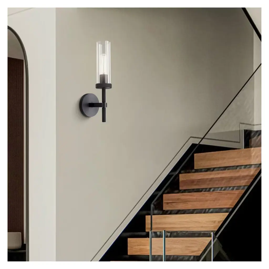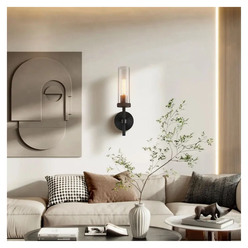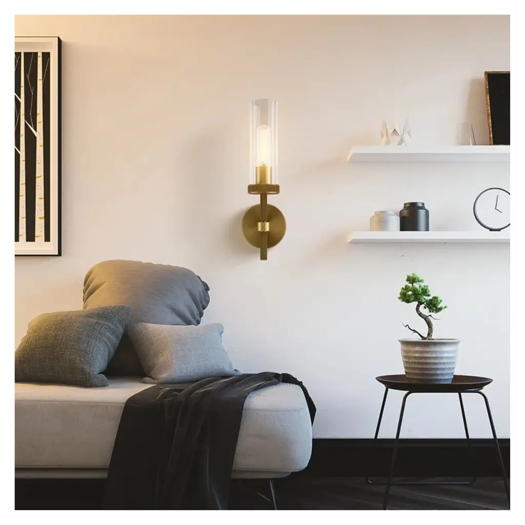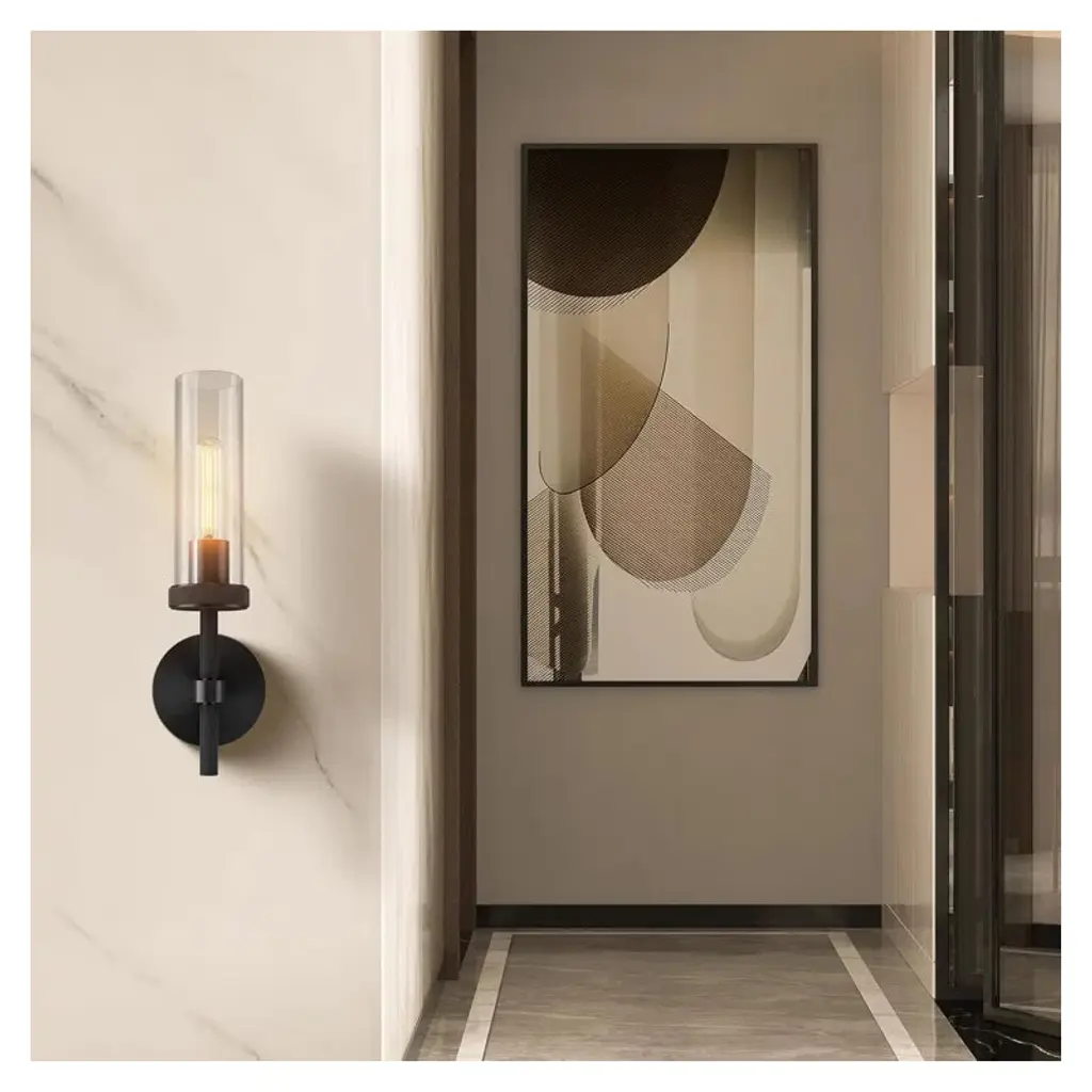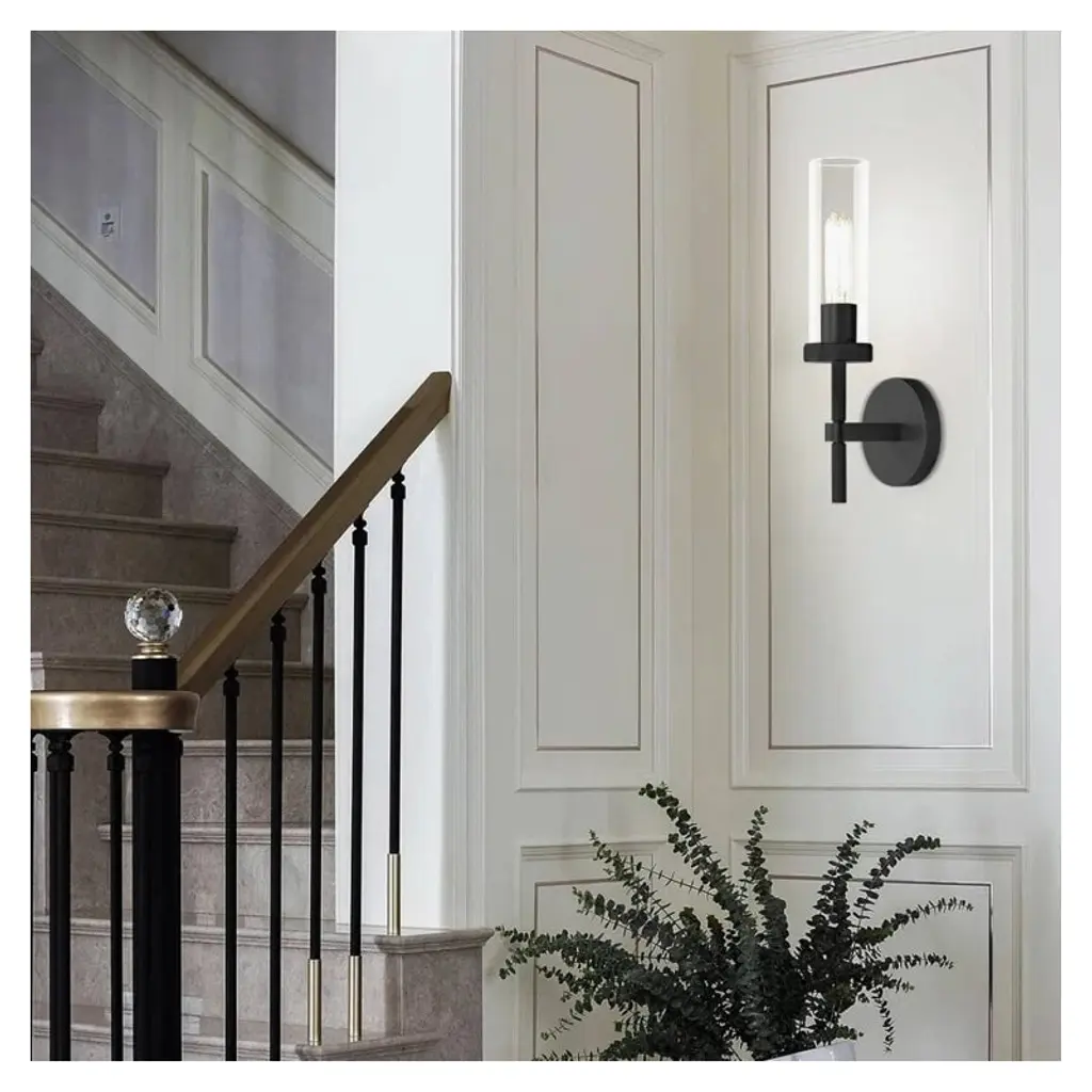 This wall light has a modern and industrial design style, elegant and beautiful. This wall mount light is made of high-quality materials, does not easily rust and fade, and has strong corrosion resistance. The thick clear glass shade is used, which is not easy to break and has strong light transmittance, softening lighting care of eyes health, illuminating various spaces in your house. This wall sconce has a modern and industrial design style, elegant and beautiful. The bathroom sconce comes with one bulb, and this bathroom vanity lighting is made of high-quality materials(pure copper and glass), does not easily rust and fade, and has strong corrosion resistance. It adds a touch of opulence to your space, with its sleek and elegant matte black and brass color. The light fixture can be installed in both up and down directions.