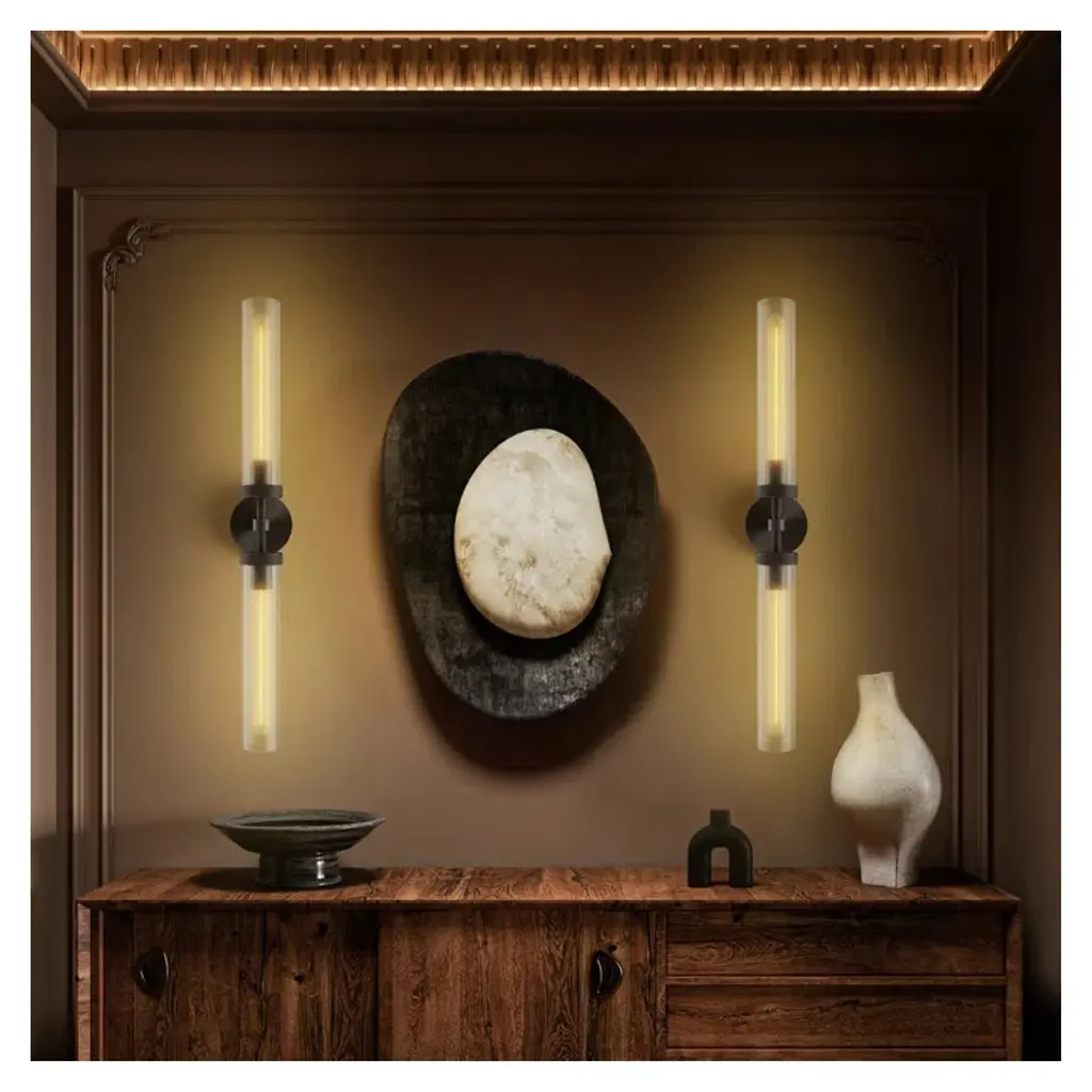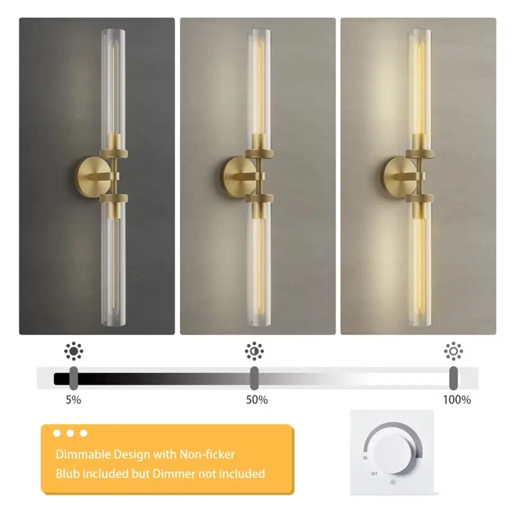 The wall lights are made of sturdy metal with a brushed black/brass finish, and paired with Grade A clear glass shades to ensure that the bathroom light fixtures over the mirror will maintain their pristine look for a long time. It adds high-end texture and elegance to your bathroom and vanity area, perfect for any decorating style such as minimalist, modern, retro, and more. This durability greatly reduces the need for frequent bulb replacements, making our lights over mirror a safe and longer-lasting option.