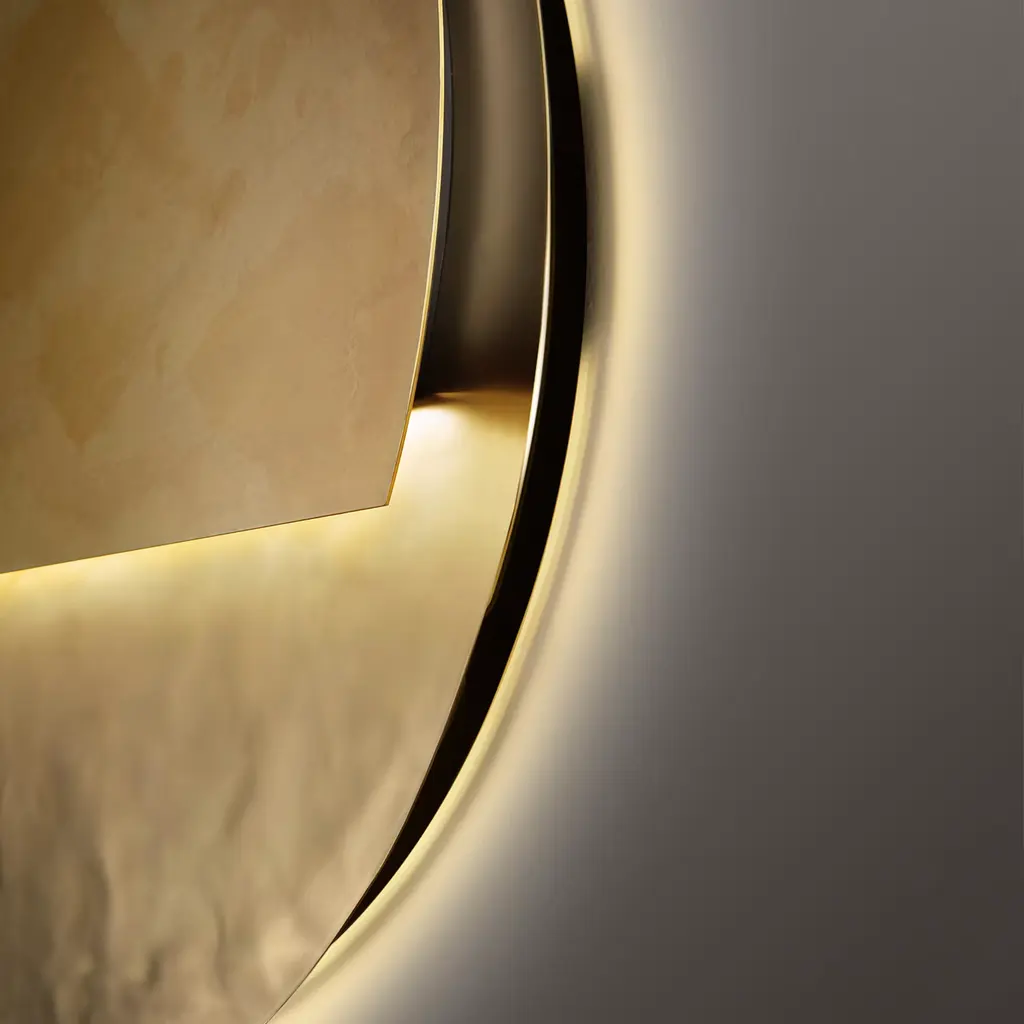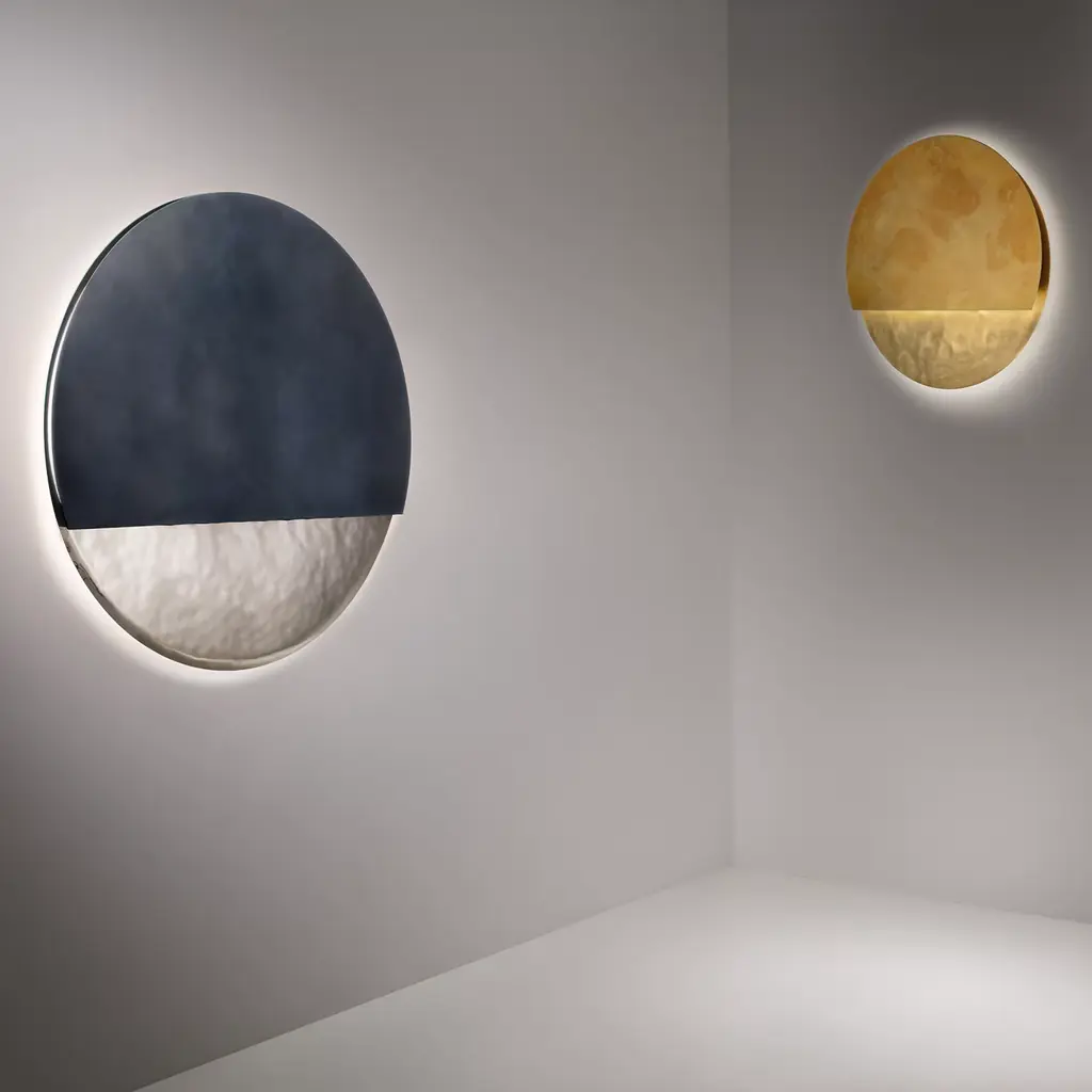 Dawn and sunset are moments loaded with intensity and charm: a flow of light always in transformation, which oscillates in its intensity and color. Light&Shade immortalizes the precise time of the day in which the clear sky is reflected in a calm sea. Available in copper, brass and stainless steel, these large wall sconces conceal their light source, which softly radiates from the circumference to create soft ambient lighting, acting as a decorative element.