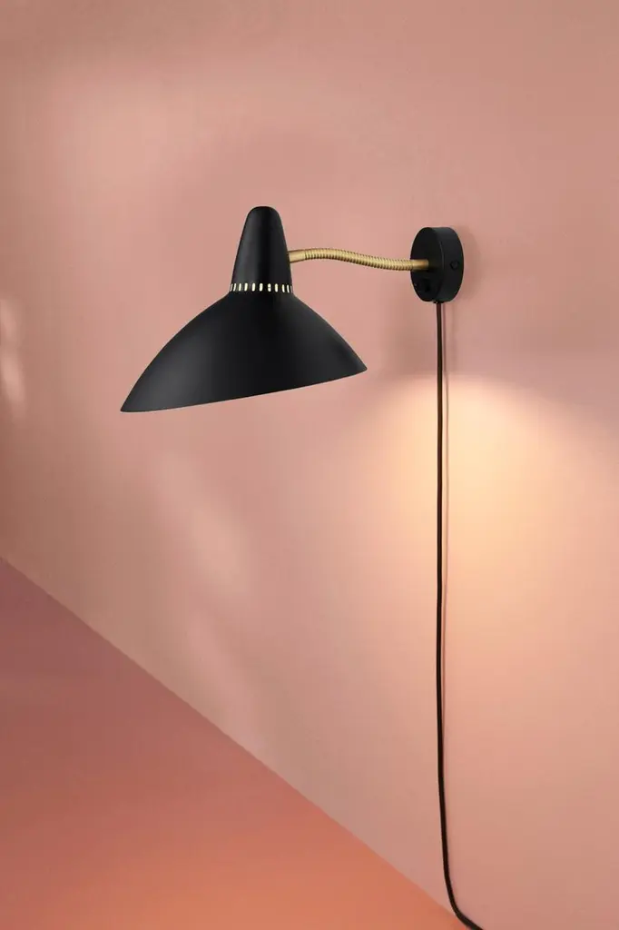 Lightsome Black Noir Wall Lamp by Warm NordicDimensions: D25 x W33 x H22 cmMaterial: Lacquered steel, Solid brassWeight: 0.6 kgAlso available in different colours. Please contact us.A wall light with an elegantly shaped wide shade by the grand master of 1950s Danish lighting design, Svend Aage Holm-Sørensen. It makes a sophisticated addition to a living room or a bedroom, where it will create atmosphere as a bedside lamp. The Lightsome wall light provides generous light by virtue of its large sculptural shade in painted metal with delicate light holes at the top - an extra Holm-Sørensen designer touch. Its gentle idiom and discreet brass details make Lightsome a timeless wall light of the highest quality. Choose from several classic colours in Warm Nordic's exclusive silky matt quality paint, which guarantees an extraordinarily beautiful and durable surface.Warm Nordic is an ambitious design brand anchored in Nordic design history and with a timeless, aesthetic style that inspires you to appreciate the little things in life. The company is the result of several years’ intense work on developing a new design brand with design history, quality and personality at its core. Warm Nordic boasts a colourful and charming universe of furniture, lamps and accessories full of personality. Our designs encapsulate the Nordic spirit, which in its essence is timeless, inclusive and warm.