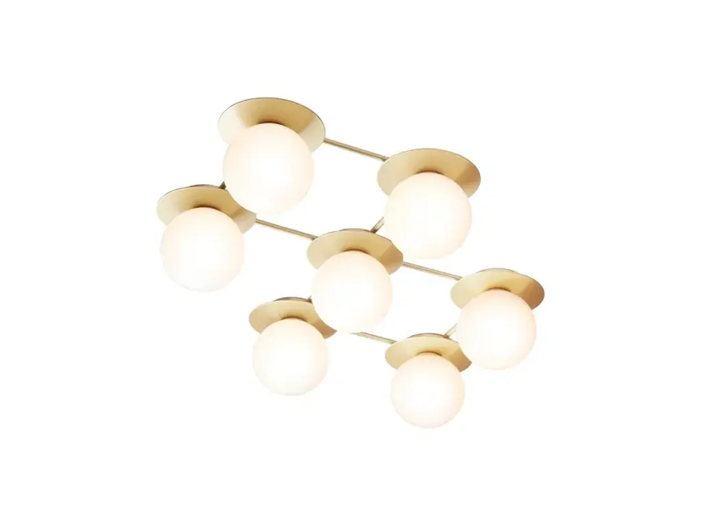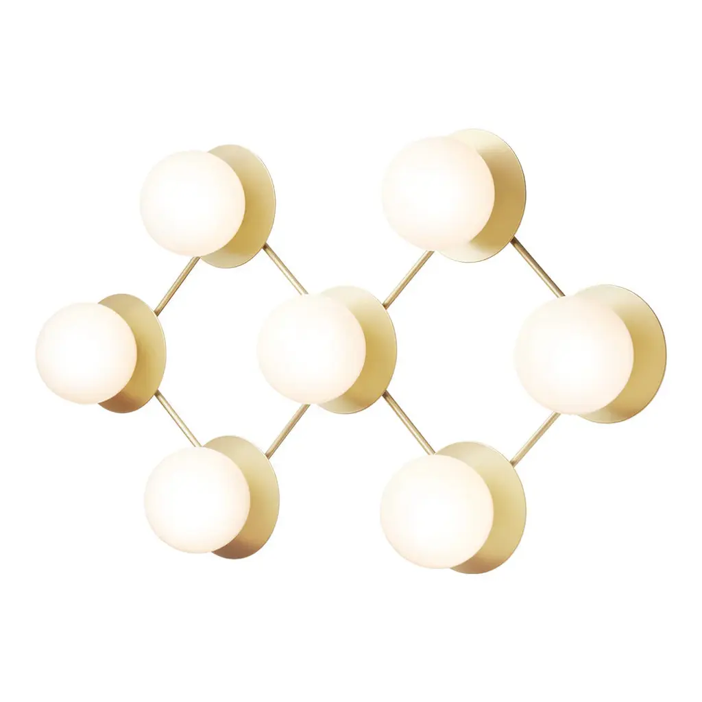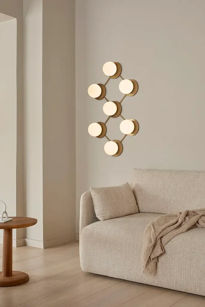 Liila 7 has an elongated modular formation. It looks great as a light sculpture and can be installed vertically or horizontally. Liila 7 is ideal on dining room or lounge walls, as a luminous headboard or on the ceiling of a narrow hall where high-quality lighting is needed. Its modular construction makes it ideal to be grouped into attractive arrangements.Light source: Socket: G9Max wattage: 7W LEDVoltage (V): 220-240V / 120VLight sources not includedDimmable if installed with appropriate dimmable LEDlight source(s) suitable for your dimmer circuit.The Liila collection has a playful approach to light and how wall lighting is usually conceived. Liila is a sculpture for the wall from where it spreads an extravagant atmosphere through its mouth-blown glass. The clear optic glass gives a defined light, creating radiant reflections like the rays of the sun, while the opal white glass gives a soft, diffused light like a Nordic midnight sun. The collection consists of single wall and ceiling lamps and a chandelier for the wall which can be customised.