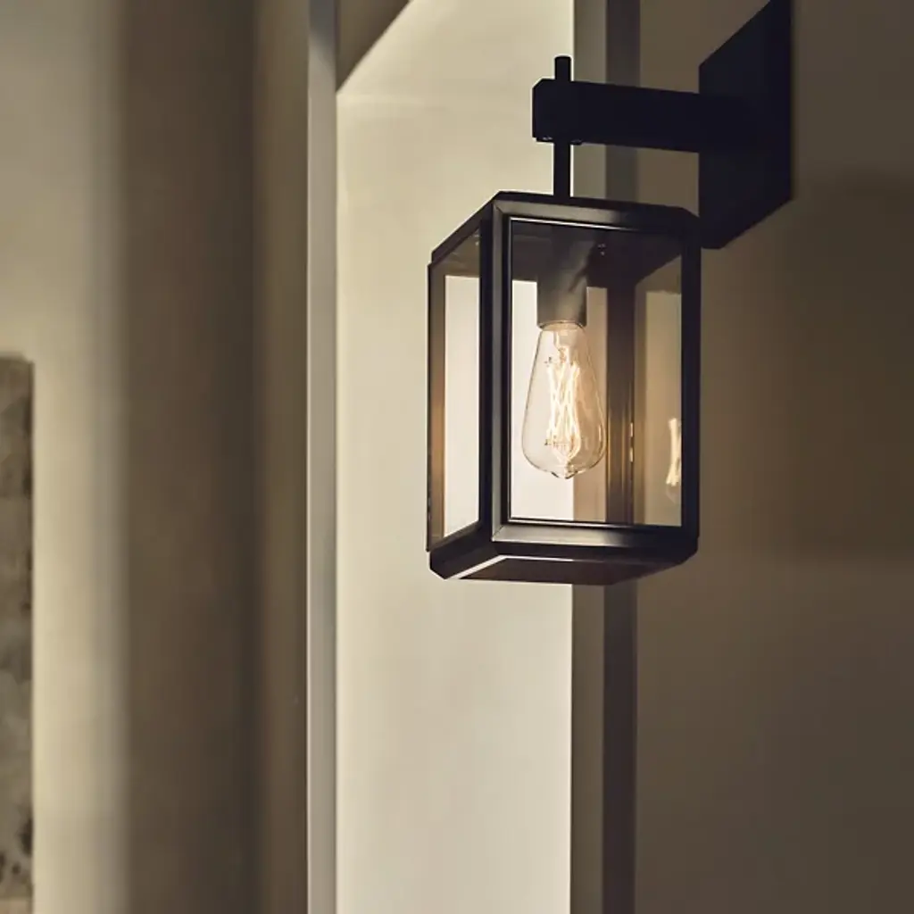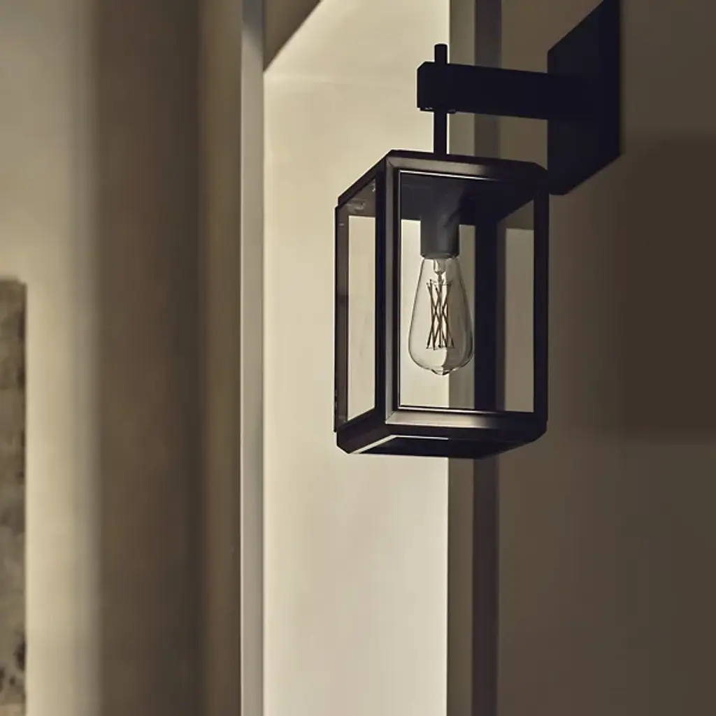 An absorbing box of warm, fulfilling light. Introduce a healthy dose of drama to a room, entryway, or hallway with the Lilac Wall Sconce from J. Adams & Co. The sconce requires minimal wall space to mount securely, thanks to a compact backplate. A pair of slender arms bring the piece forward with a sharp modern style. Crafted from metal, the rectilinear structure gives a nod to traditional lanterns with a glass window design. The glass panels accentuate the warm shine of the lamping inside. Once turned on, the radiant ambient light spills out the facets to glaze the surrounding wall.