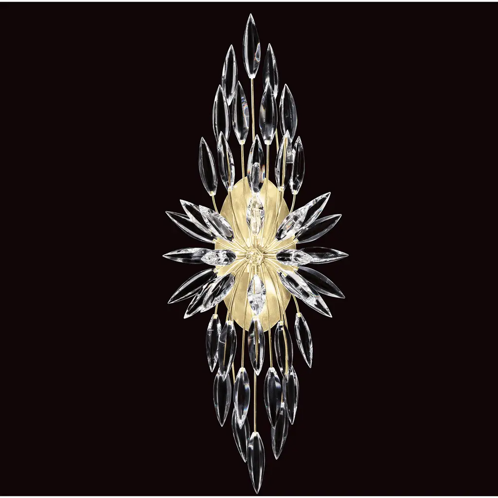 Sconce in gold leaf finish with graceful bouquets of faceted crystal lily buds that create a naturally elegant lighting effect.