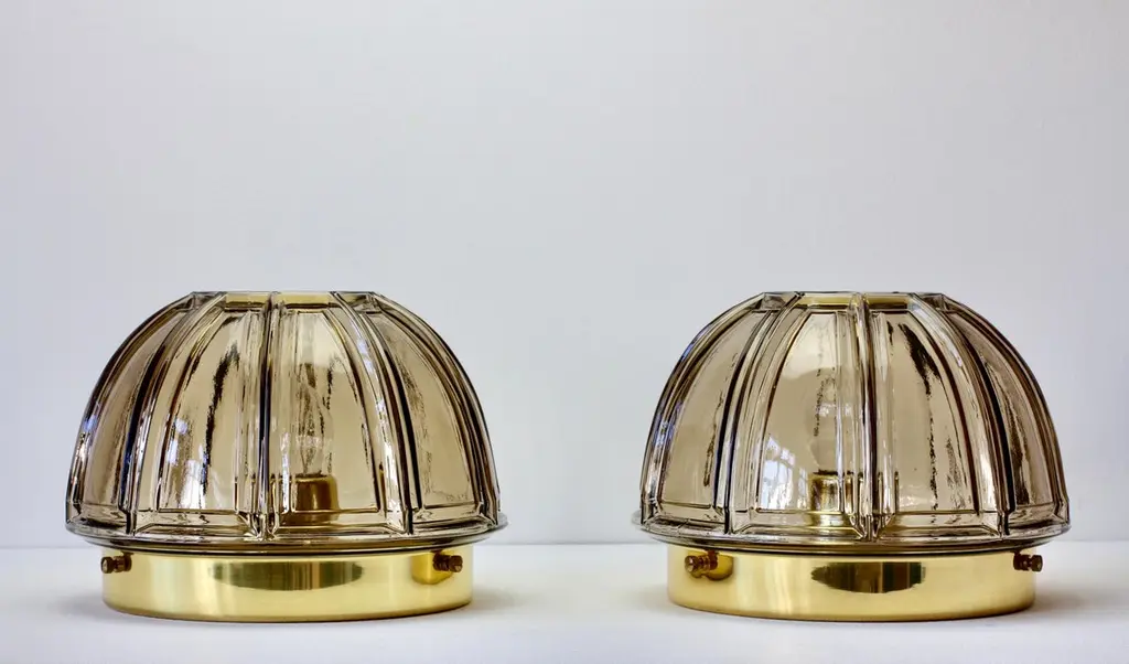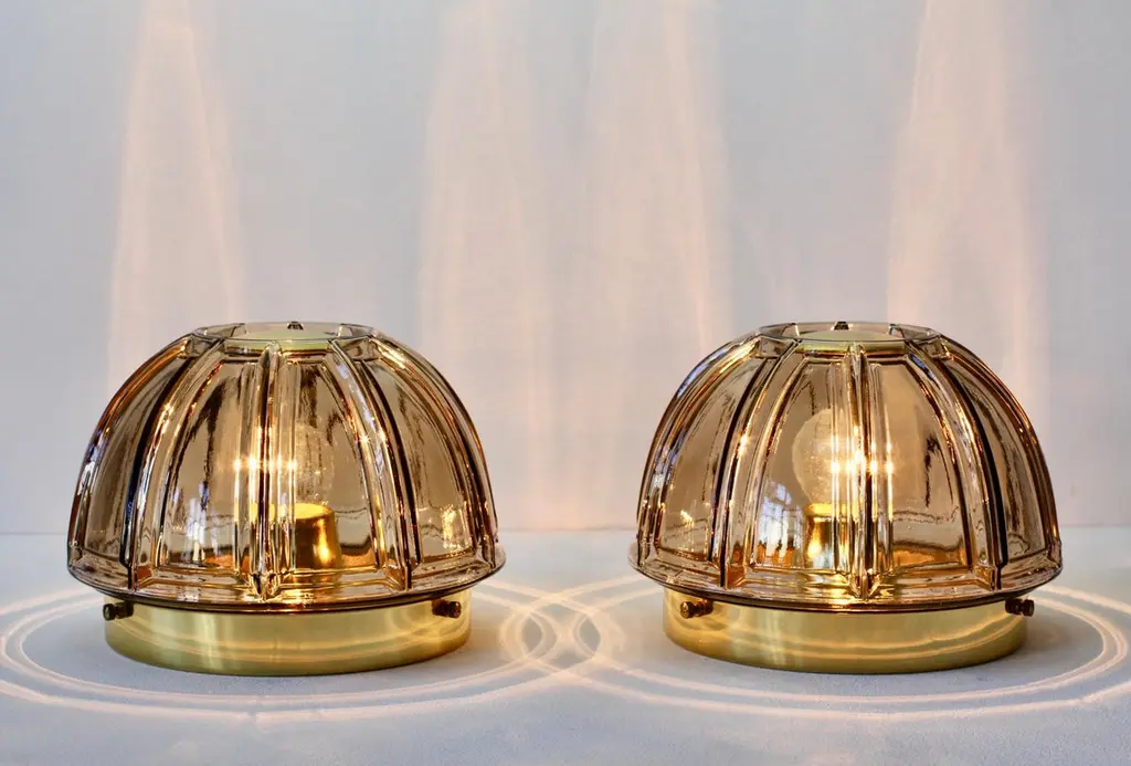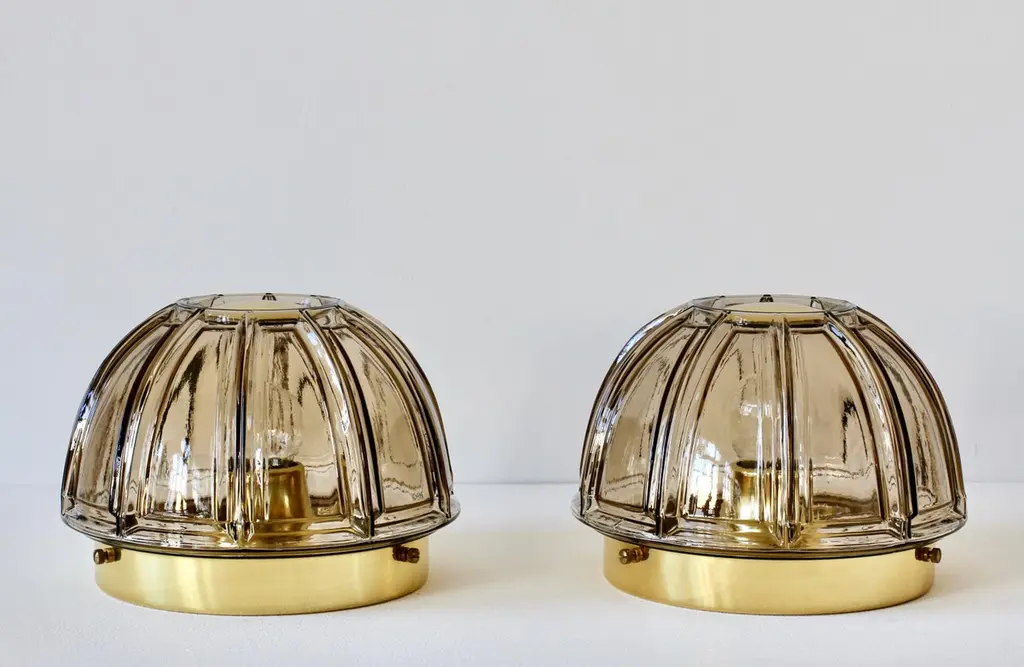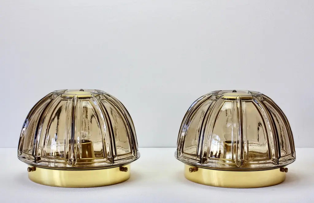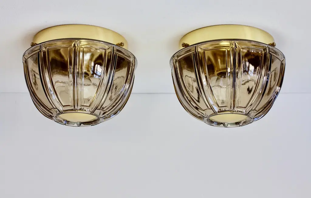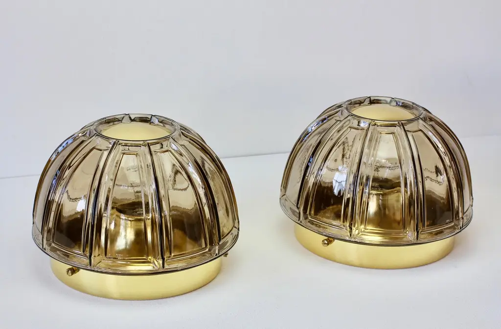Limburg 1 Of 2 Topaz Toned Textured Glass Flush Mount Wall Lights Or Sconces