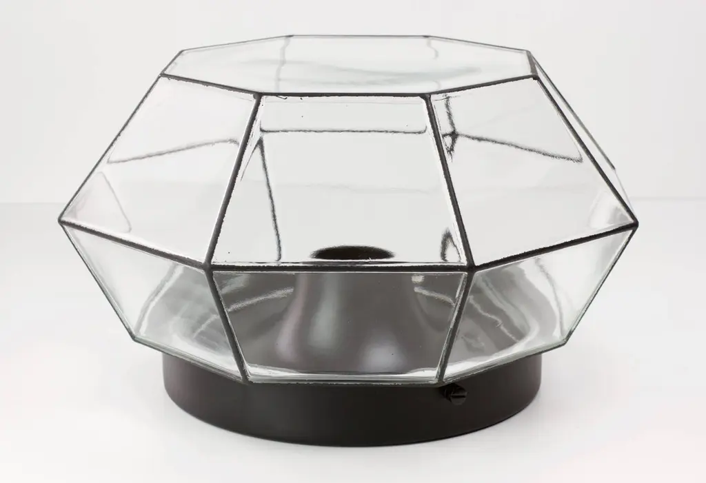 Limburg 1 Of 4 Vintage Geometric Black And Clear Glass Flush Mount Lights, 1970s