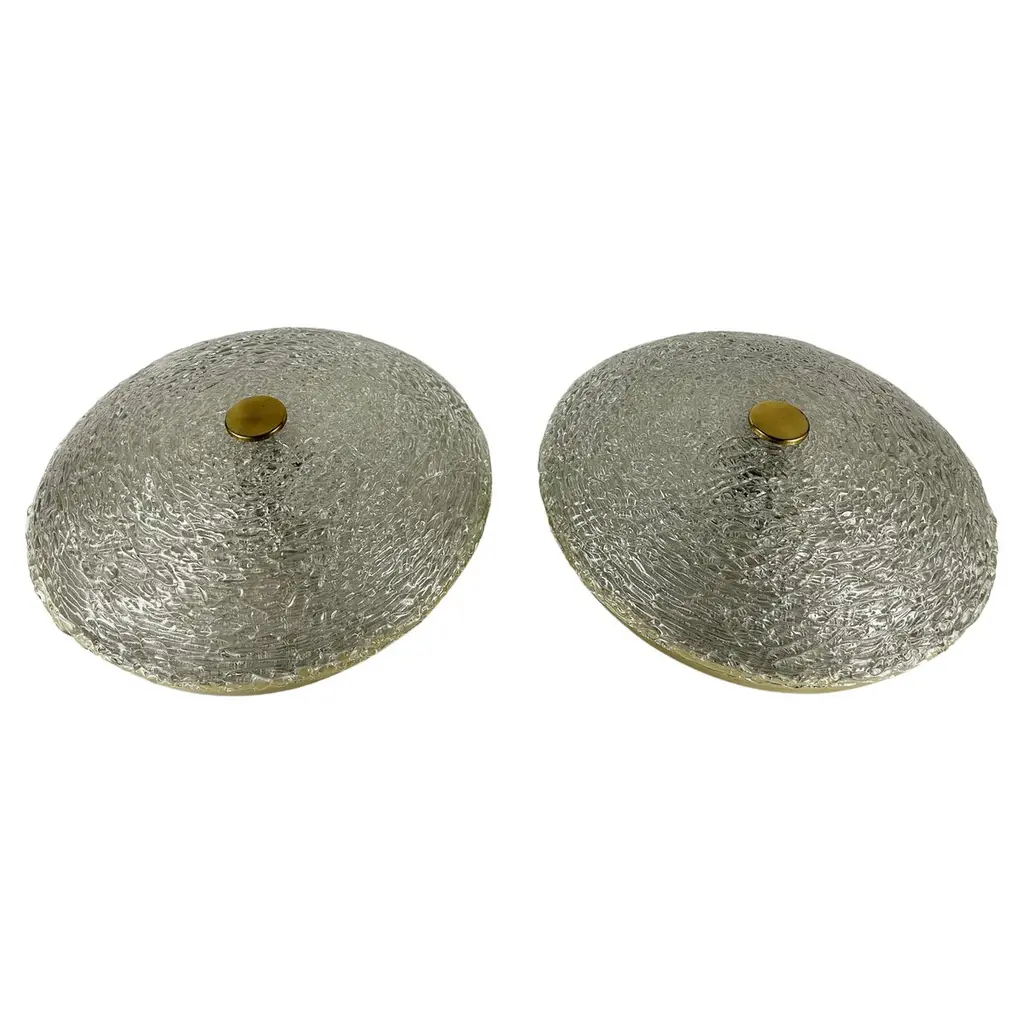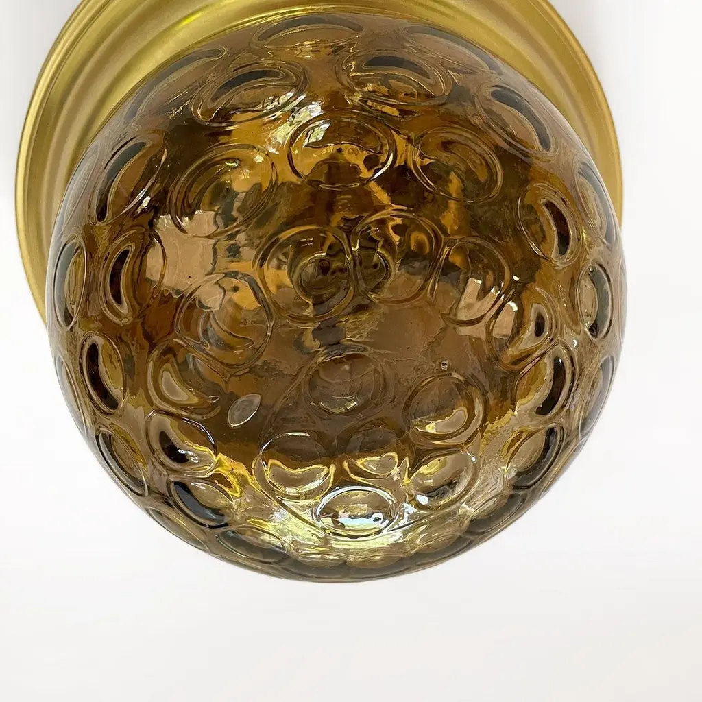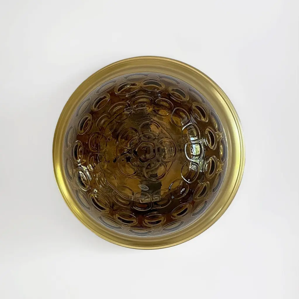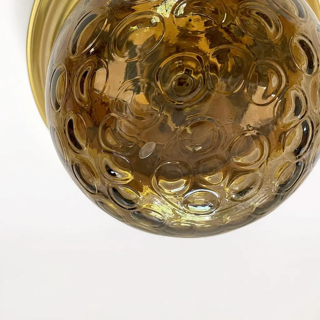 Limburg bubble glass wall lightsHelena Tynell for Glashütte LimburgGermany, circa 1960sEach handblown bubble glass dome is unique in its composition and detailsEmits a beautiful warm and diffused lightCan be used as a sconce or ceiling fixture Patina from age and useMinor grazing and loss around the perimeter of the glass shades which is not visible once assembled Both lights are structurally soundPlease reference photosTwo lights availablePriced and sold individually
