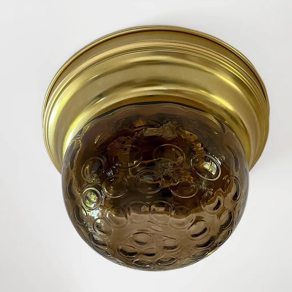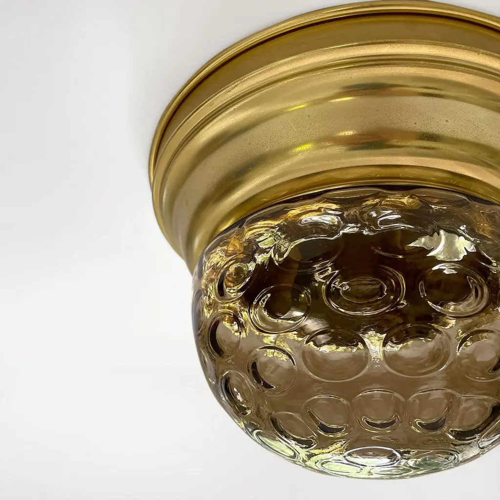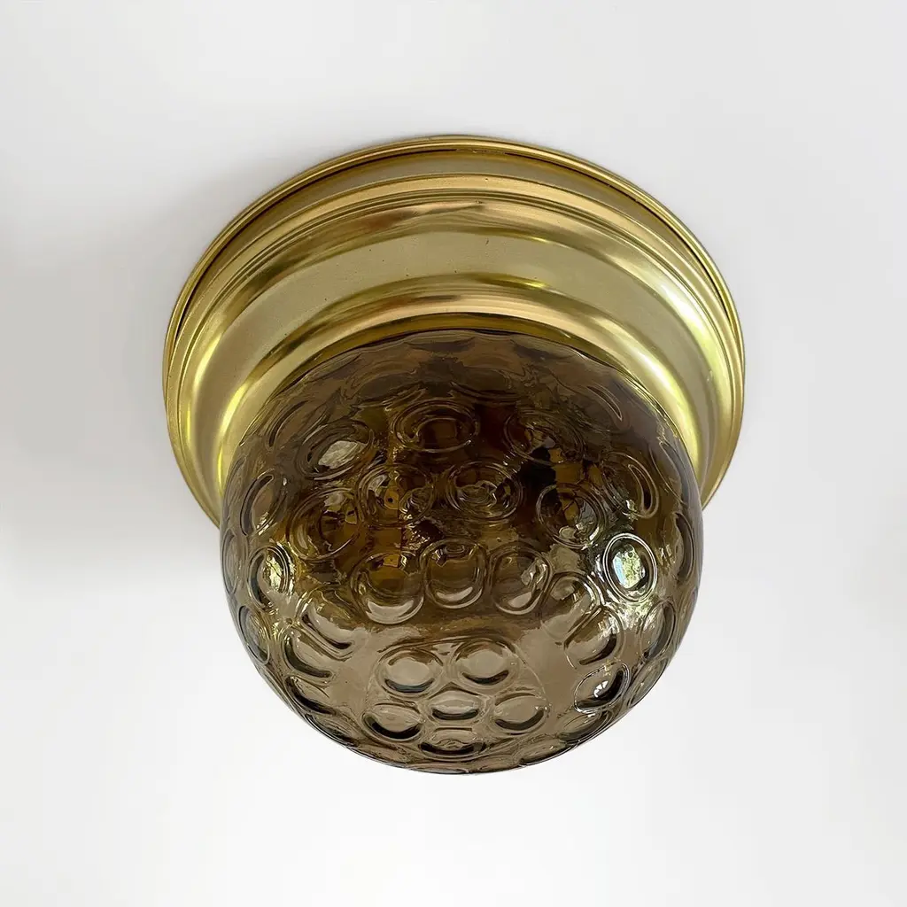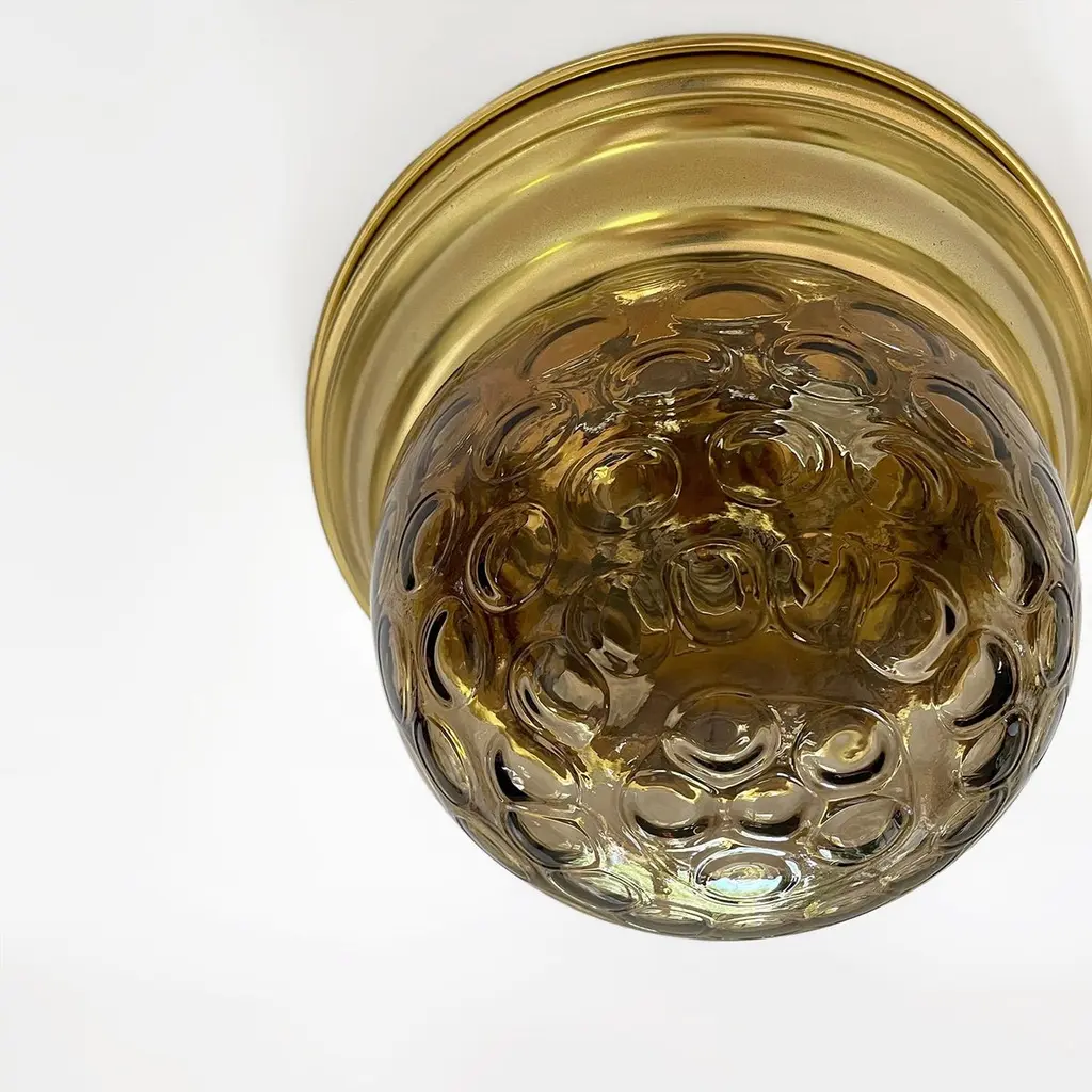 Limburg bubble glass wall lightsHelena Tynell for Glashütte LimburgGermany, circa 1960sEach handblown bubble glass dome is unique in its composition and detailsEmits a beautiful warm and diffused lightCan be used as a sconce or ceiling fixture Patina from age and useMinor grazing and loss around the perimeter of the glass shades which is not visible once assembled Both lights are structurally soundPlease reference photosTwo lights availablePriced and sold individually