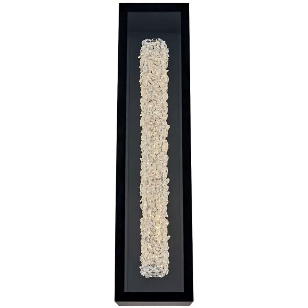 Graphic and organic outlines harmoniously unite to accentuate one’s open-air walls with the Lina Esterno LED Outdoor Wall Sconce from Allegri by Kalco Lighting. The clean corners of the modern or contemporary setting are ideal with this durable geometric metal structure. Its windows direct the eyes to the artisanal Firenze crystal diffuser that evokes a natural formation. An LED array casts lively highlights on the glass and introduces a calm ambient glow.