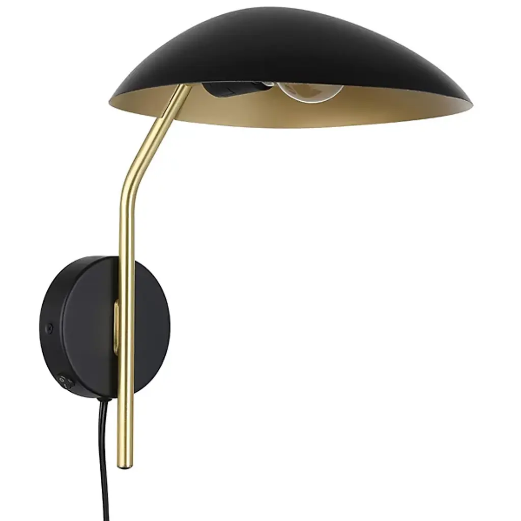 Far-reaching light and style for modern spaces. The Lindmoor Wall Sconce by Eglo has an elongated, saucer-shaped metal shade inspired by mid-century modern lighting designs. With the help of the bent stem that holds it away from the wall, the shade can project a bright and broad wash of light down onto a side table or bedside table. This Wall Sconce can be installed wherever you need it, hardwired or as a plug-in.