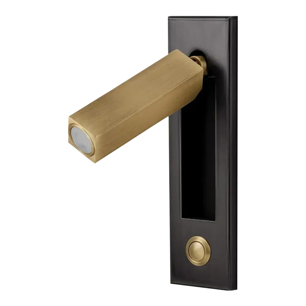 The Line Up LED Wall Sconce from Modern Forms elevates task lighting through its refined pivoting mechanism that emerges from a recessed wall mount. The polished aluminum construction features an intuitive dimple control system where users simply push the arm outward to activate illumination and close it completely for power off. This streamlined luminaire incorporates an acrylic diffuser for even light distribution while maintaining clean architectural lines. It includes USB and USB-C charging ports for added functionality, making it both a lighting solution and a charging station.