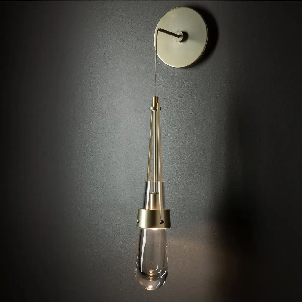 This Link Low Voltage Sconce features a substantial, clear glass shade. Set your desired drop height for a range of applications, including vanities, above bedroom night tables, and more.