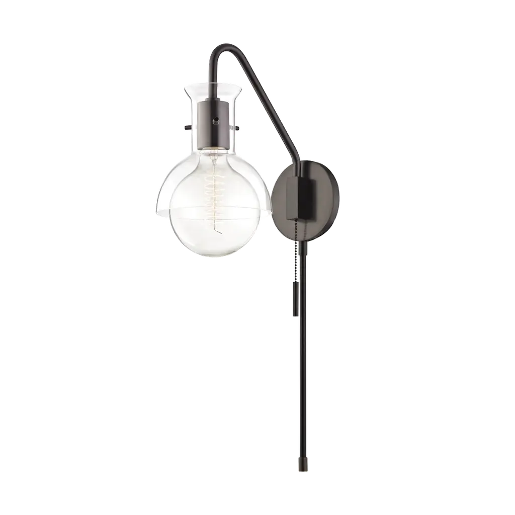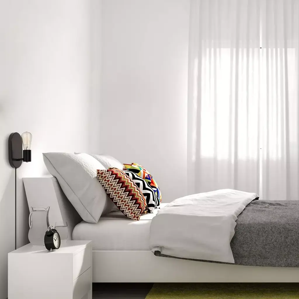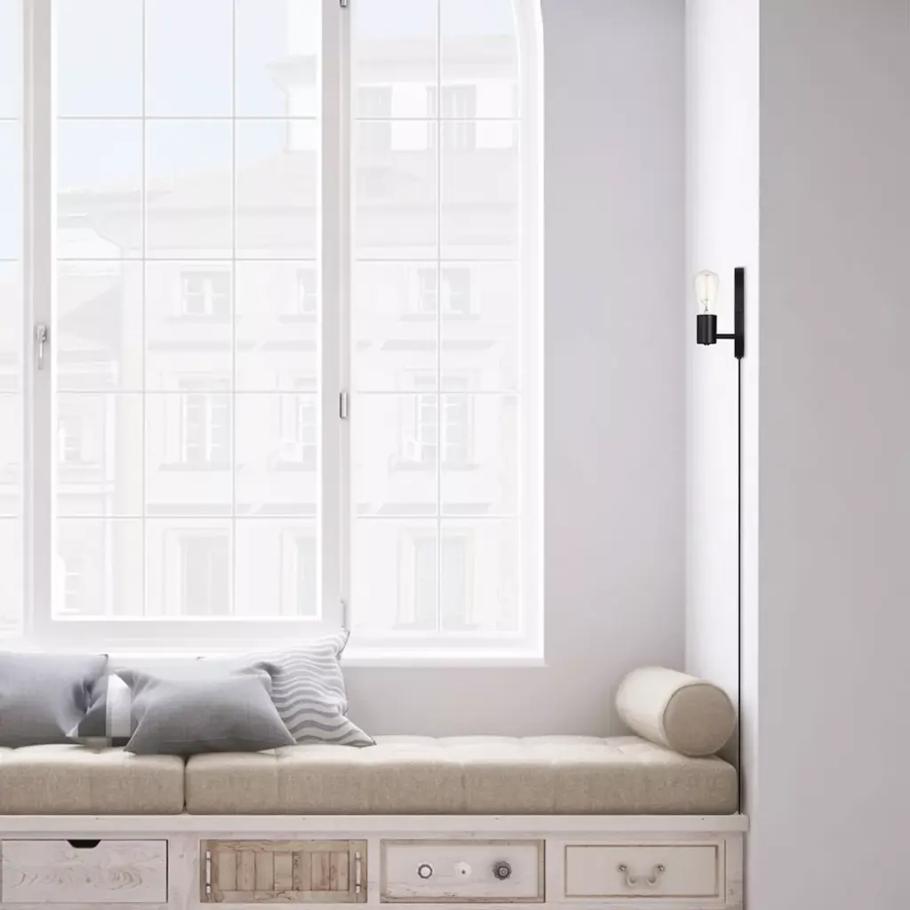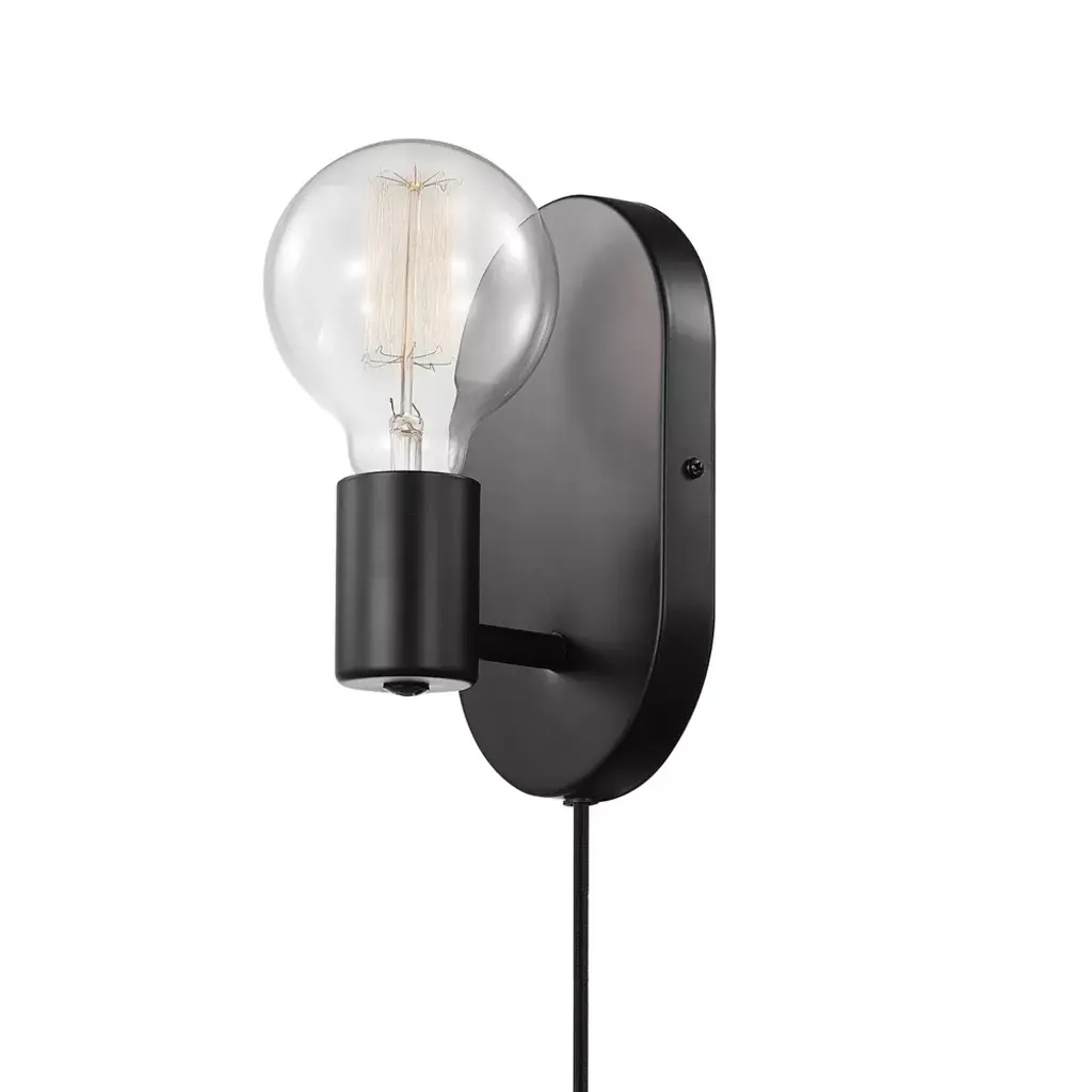 An exposed bulb, black finish, and a trendy oval backplate come together in the Novogratz x Globe Linus Wall Sconce to create a style you simply cannot find anywhere else. With a complete modern look this sconce complements a variety of interior designs and stands out against a colorful wall just as easily as against a minimalist white decor. You can place this light next to your bed as a reading light or in your living room next to your favorite chair. With the option of plugging it in or hardwiring it in place, the options are truly endless. The Novogratz and Globe Electric - lighting made easy.