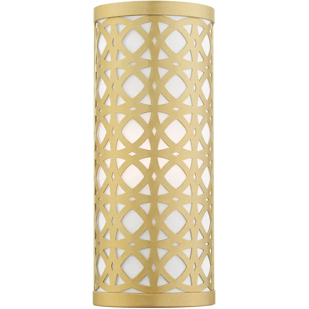 Collection: Arabesque, Material: Steel, Finish Color: English Bronze, Width: 5.13", Height: 12.88", Depth: 3.88", Height From Outlet Box: 6.38", Backplate Width: 4.38", Backplate Length: 12", Lamping Type: Incandescent, Number Of Bulbs: 1, Wattage: 40 Watts, Moisture Rating: Dry Rated, Desc: Our Arabesque single light wall sconce will add refined style and a hint of mystery to your decor. The off-white fabric hardback shade creates a warm illumination, while the light brings to life the intricate soft gold cutout pattern.,