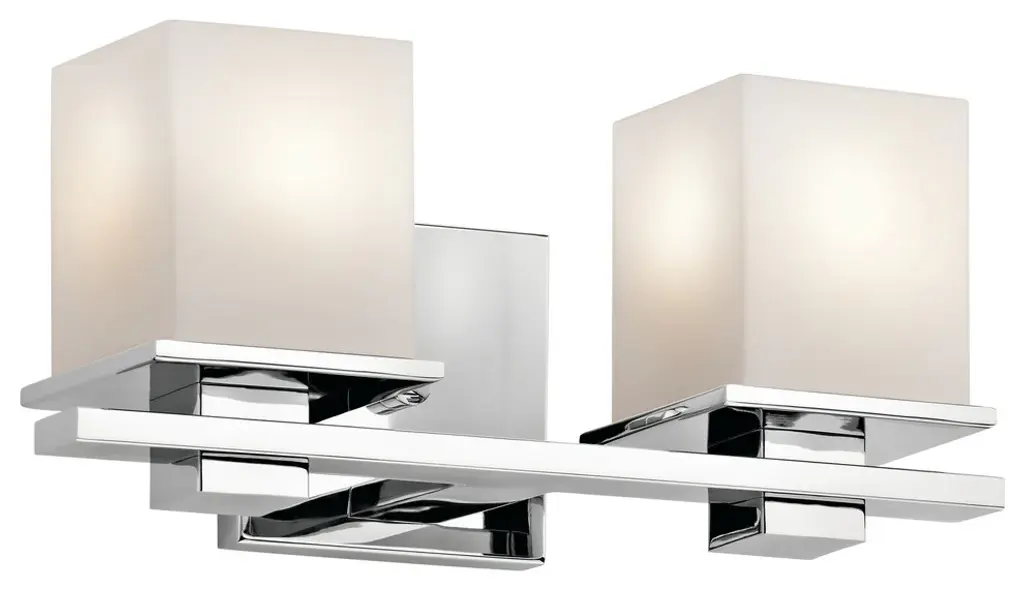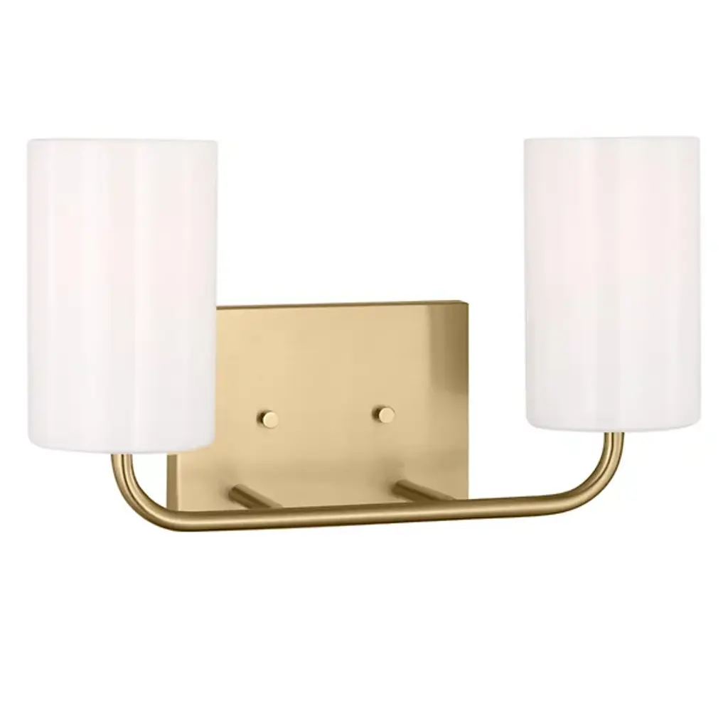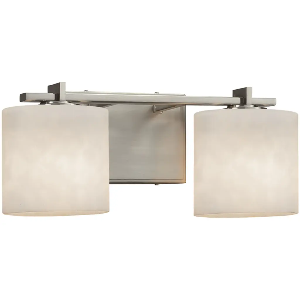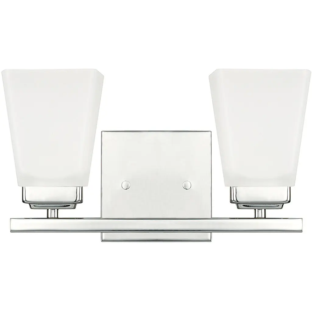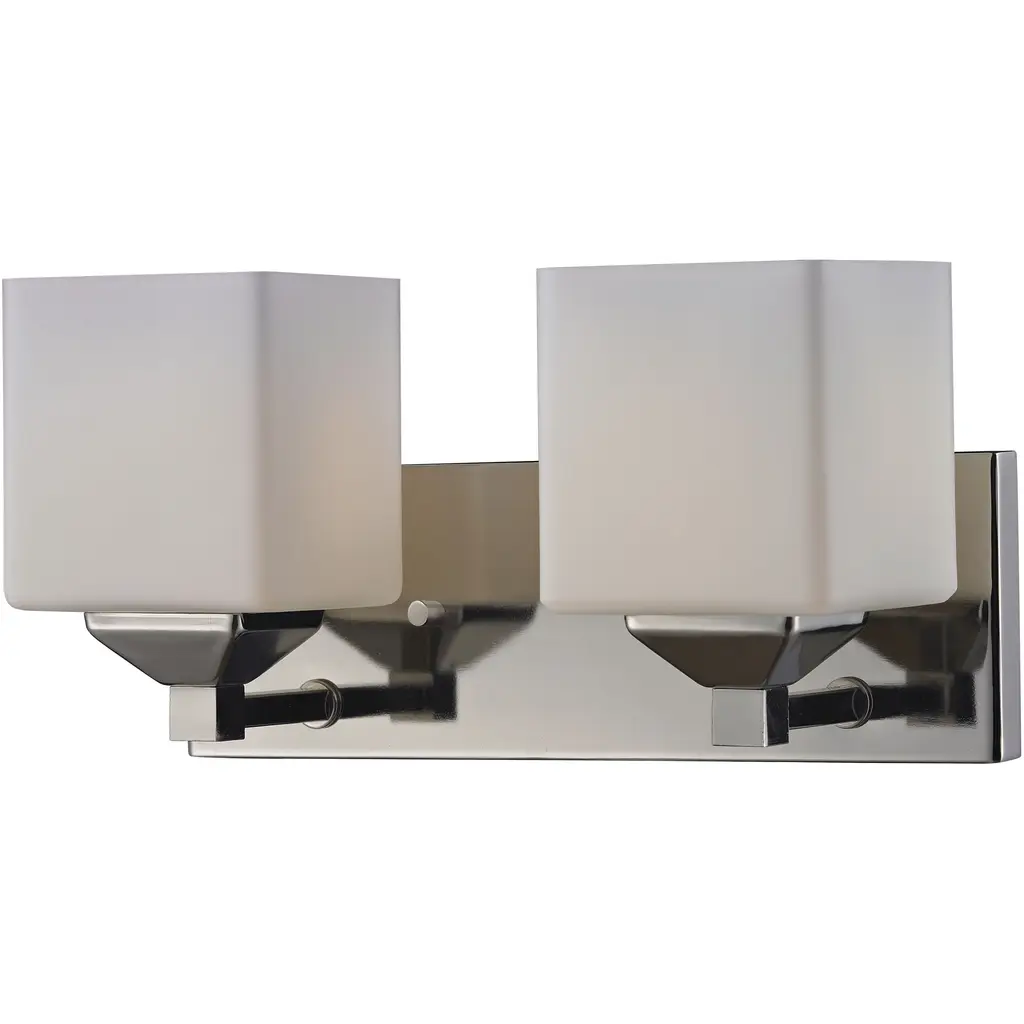 Collection: Aragon, Material: Steel, Finish Color: Brushed Nickel, Width: 15", Height: 9.5", Depth: 6.75", Height From Outlet Box: 7", Backplate Width: 4.75", Lamping Type: Incandescent, Number Of Bulbs: 2, Wattage: 100 Watts, Moisture Rating: Dry Rated, Desc: This bath vanity light is sure to provide reliable illumination without sacrificing style. It features two satin opal white glass shades with an open bottom, exposing the bulbs inside. A polished chrome finish covers the backplate and accents the light. Mounting Direction: Up/Down / Shade Included: Yes. ,