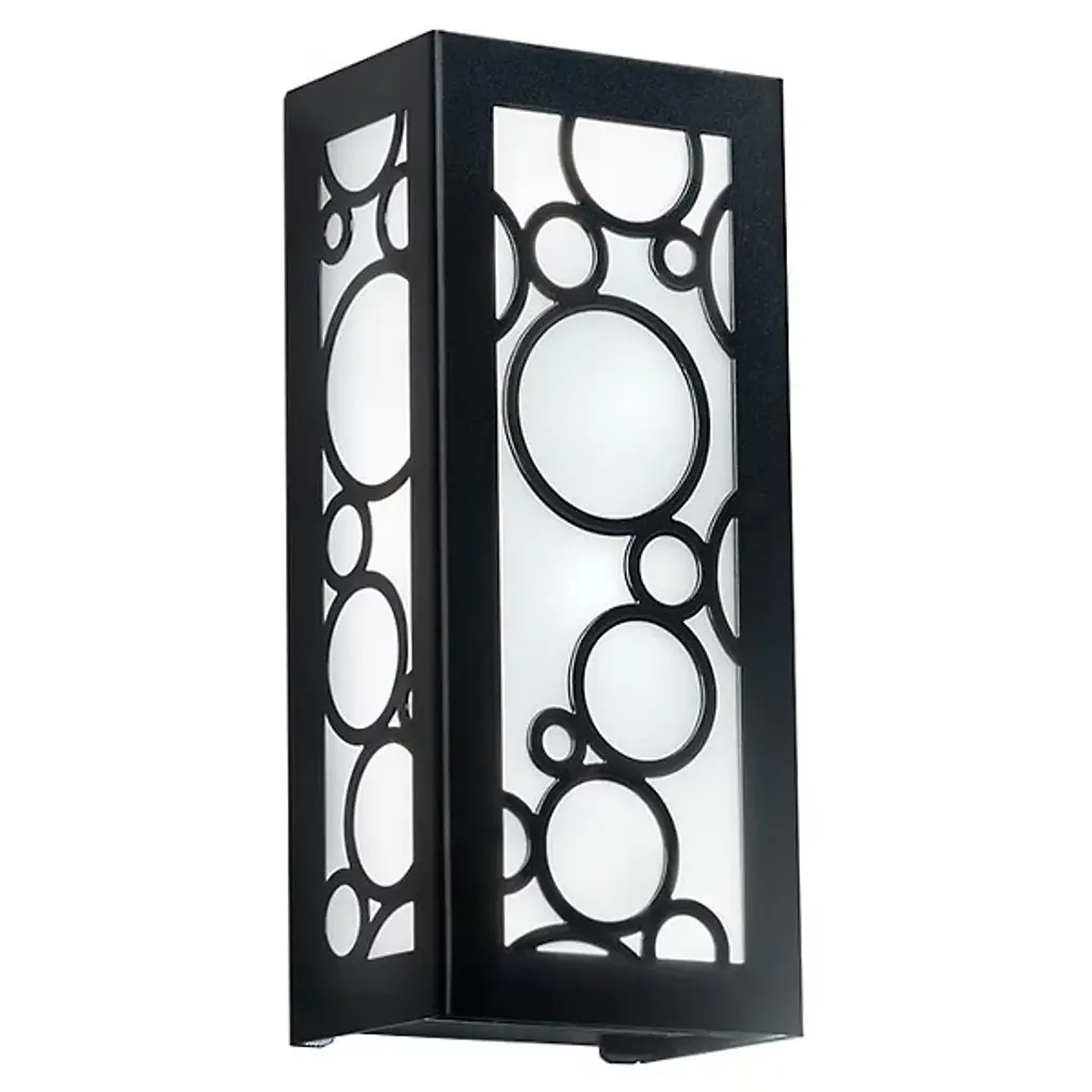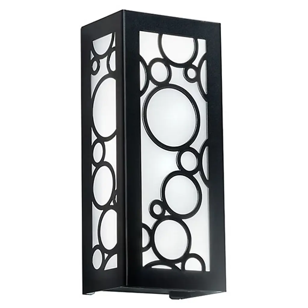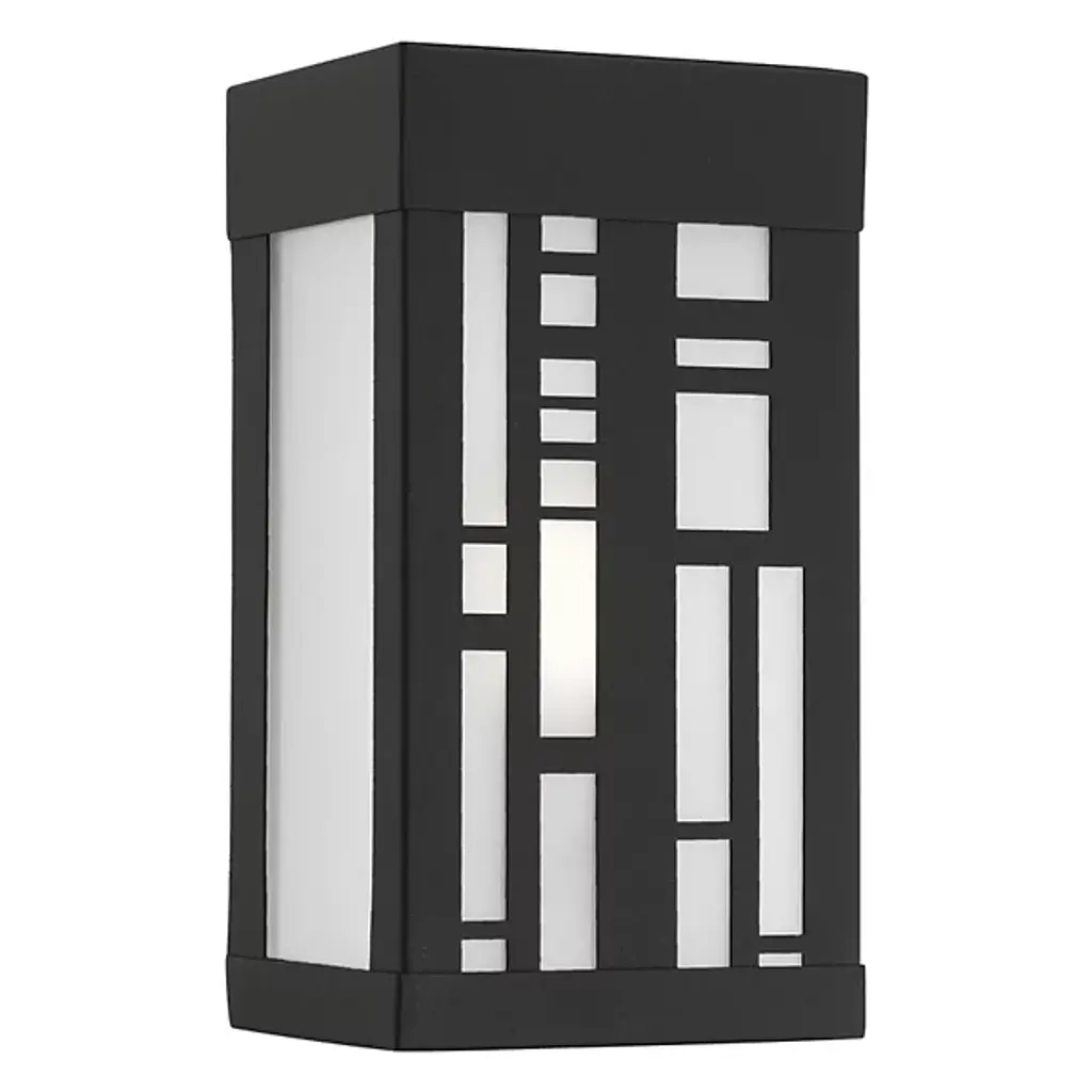 Collection: Berkeley, Material: Steel, Finish Color: Black, Width: 4.5", Height: 8.5", Depth: 3.95", Height From Outlet Box: 6", Backplate Width: 4.5", Backplate Length: 8.5", Lamping Type: Incandescent, Number Of Bulbs: 1, Wattage: 40 Watts, Moisture Rating: Dry Rated, Desc: The intricate details of the black finish on this outdoor wall sconce from the Malmo collection creates delightful shadow patterns on adjoining wall surfaces and walkways. This stainless steel fixture features glass panels finished clear on the outside and sandblasted on the inside.,