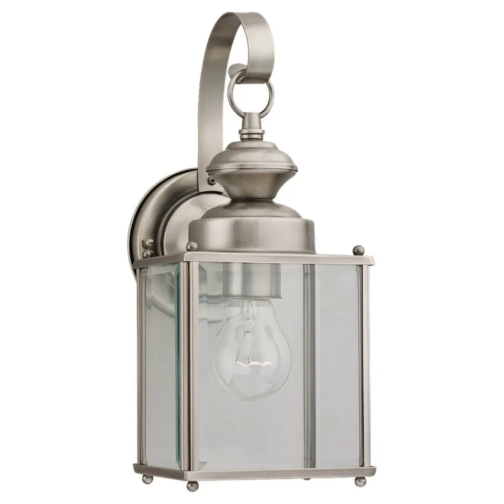 Collection: Georgetown, Material: Brass, Finish Color: Brushed Nickel, Width: 7", Height: 12", Depth: 7", Height From Outlet Box: 4.75", Backplate Width: 4.75", Backplate Length: 5.5", Lamping Type: Incandescent, Number Of Bulbs: 1, Wattage: 60 Watts, Moisture Rating: Dry Rated, Desc: Our Georgetown collection looks to add regal elegance to your home with a line of lighting that embodies classic design for those who only want the finest. Using the highest quality materials available, the Georgetown begins with solid brass so that each fixture not only looks fantastic, but provides a fit and finish that will last for years as well. Shade Included: Yes. ,