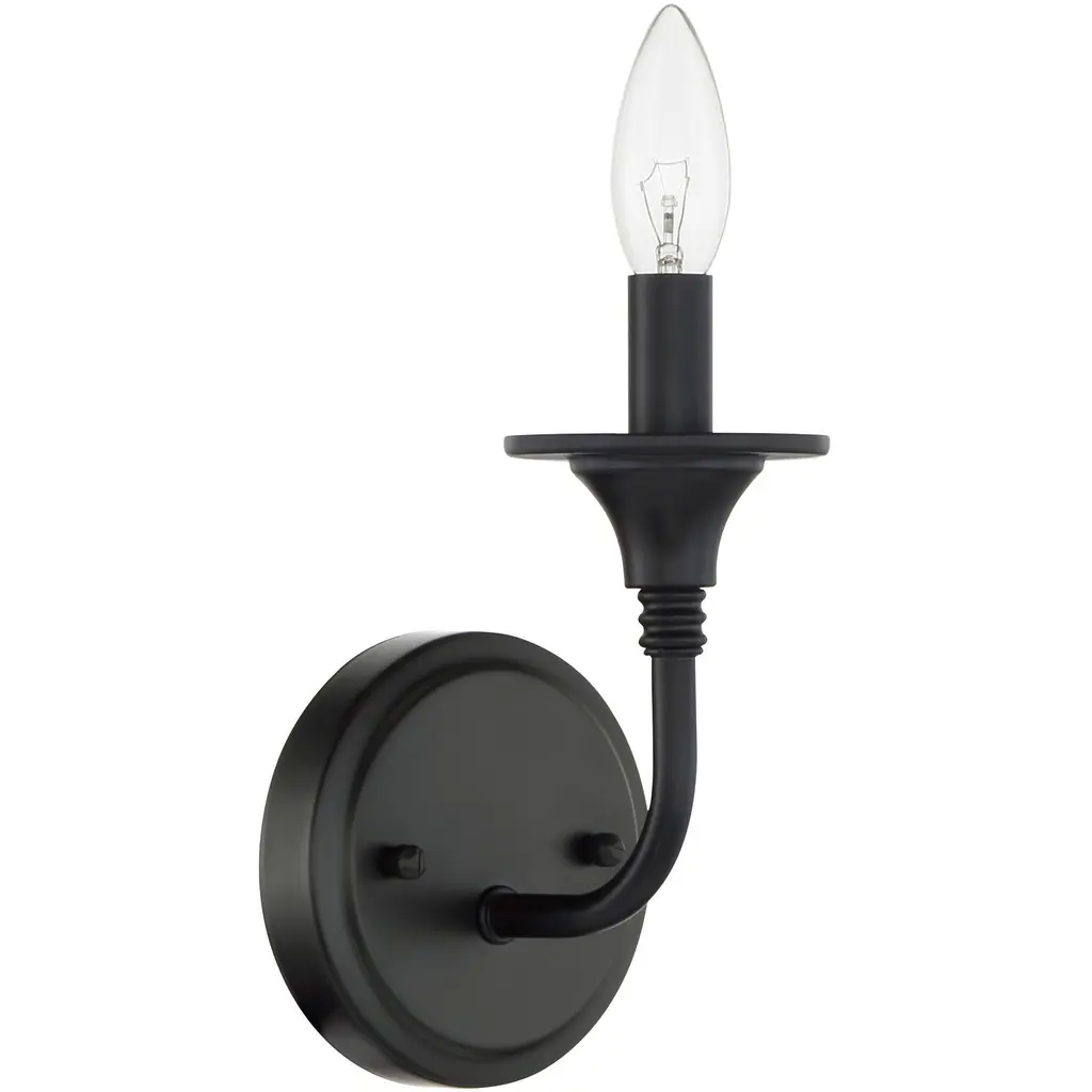Collection: Home Basics, Material: Steel, Finish Color: White, Width: 4.25", Height: 7", Depth: 6.5", Height From Outlet Box: 7", Backplate Width: 4", Backplate Length: 6", Lamping Type: Incandescent, Number Of Bulbs: 1, Wattage: 60 Watts, Moisture Rating: Dry Rated, Desc: This one light wall sconce from the Home Basics collection is an alluring reflection of traditional style. The elegant sweeping arm and white finish are beautiful details that unite for a breathtaking piece. Mounting Direction: Up/Down. ,