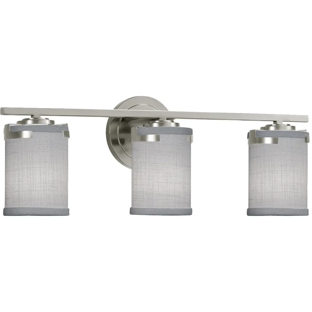 Collection: Industro, Material: Steel, Finish Color: Brushed Nickel, Width: 23.5", Height: 11", Depth: 5.5", Height From Outlet Box: 8.5", Backplate Width: 5.13", Backplate Length: 0.75", Lamping Type: Incandescent, Number Of Bulbs: 3, Wattage: 60 Watts, Moisture Rating: Dry Rated, Desc: The Industro collection has a clean, crisp look and contemporary appeal. This three-light vanity sconce has a black finish with brushed nickel finish accents and a sleek stainless steel mesh shade. This vanity sconce easily fits into industrial, transitional or modern classic bathrooms. Mounting Direction: Up/Down / Shade Included: Yes. ,