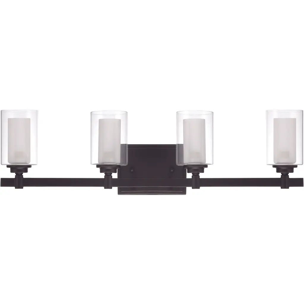 Collection: Middlebush, Material: Steel, Finish Color: Black, Width: 45.5", Height: 9", Depth: 6.5", Height From Outlet Box: 6.25", Backplate Width: 5.5", Backplate Length: 0.75", Lamping Type: Incandescent, Number Of Bulbs: 5, Wattage: 100 Watts, Moisture Rating: Dry Rated, Desc: A magnificent home lighting choice, the Middlebush collection five light vanity sconce effortlessly blends traditional style with clean, modern-day materials. It is shown in a black finish with hand blown clear outer glass and satin opal white inner glass. Mounting Direction: Up/Down / Shade Included: Yes. ,