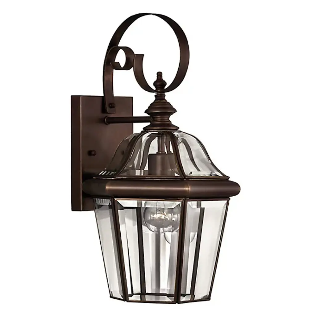 Collection: Monterey, Material: Brass, Finish Color: Bronze, Width: 7", Height: 12.5", Depth: 7", Height From Outlet Box: 6.5", Backplate Width: 4.75", Backplate Length: 5.5", Lamping Type: Incandescent, Number Of Bulbs: 1, Wattage: 100 Watts, Moisture Rating: Dry Rated, Desc: The Monterey outdoor lighting features clean, crisp lines complemented by the graceful curves of glass. Crafted from sturdy solid brass, this handsome colonial styling makes this fixture a perfect addition to your outdoor spaces. Shade Included: Yes. ,