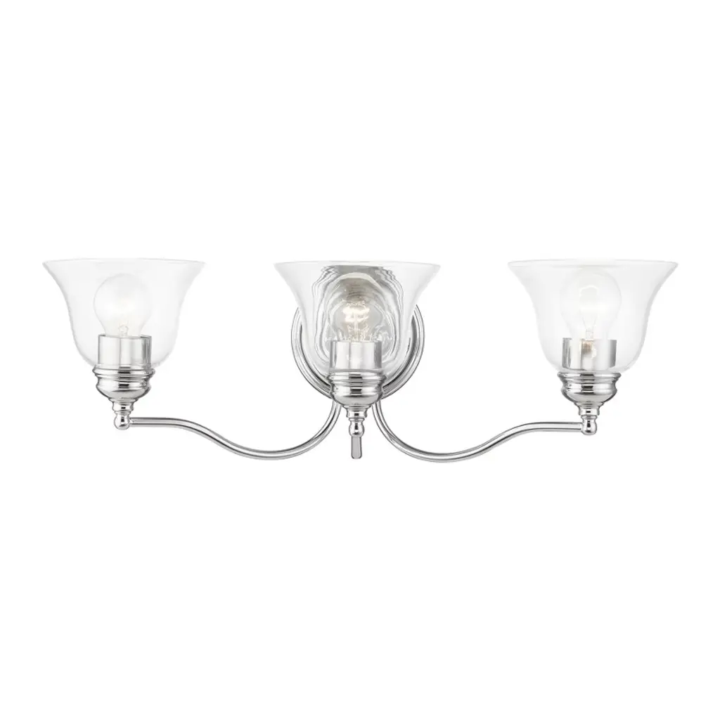 Collection: Moreland, Material: Steel, Finish Color: Polished Brass, Width: 24", Height: 7.5", Depth: 8", Height From Outlet Box: 4.5", Backplate Width: 5.38", Backplate Length: 1", Lamping Type: Incandescent, Number Of Bulbs: 3, Wattage: 60 Watts, Moisture Rating: Dry Rated, Desc: Bring a refined lighting style to your bath area with this Moreland collection three light vanity sconce. Shown in an antique brass finish and clear glass.,