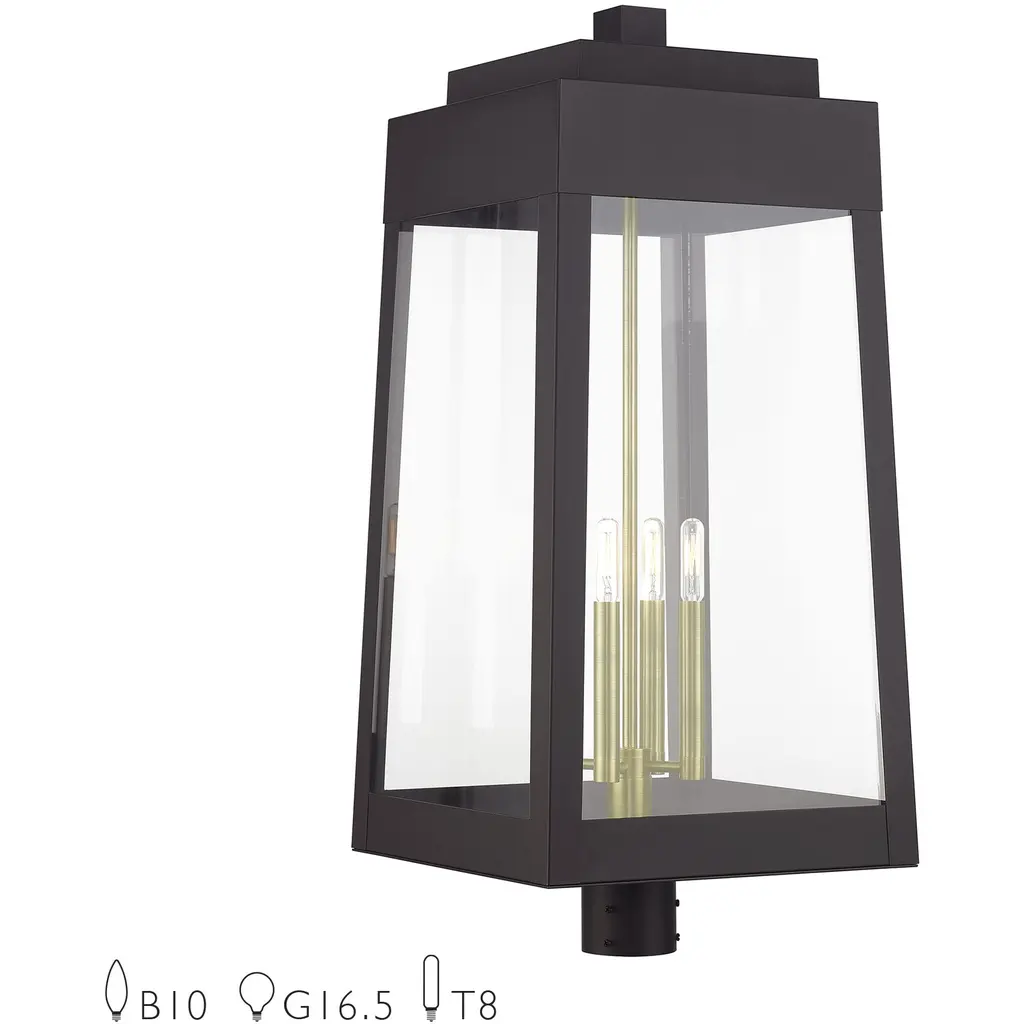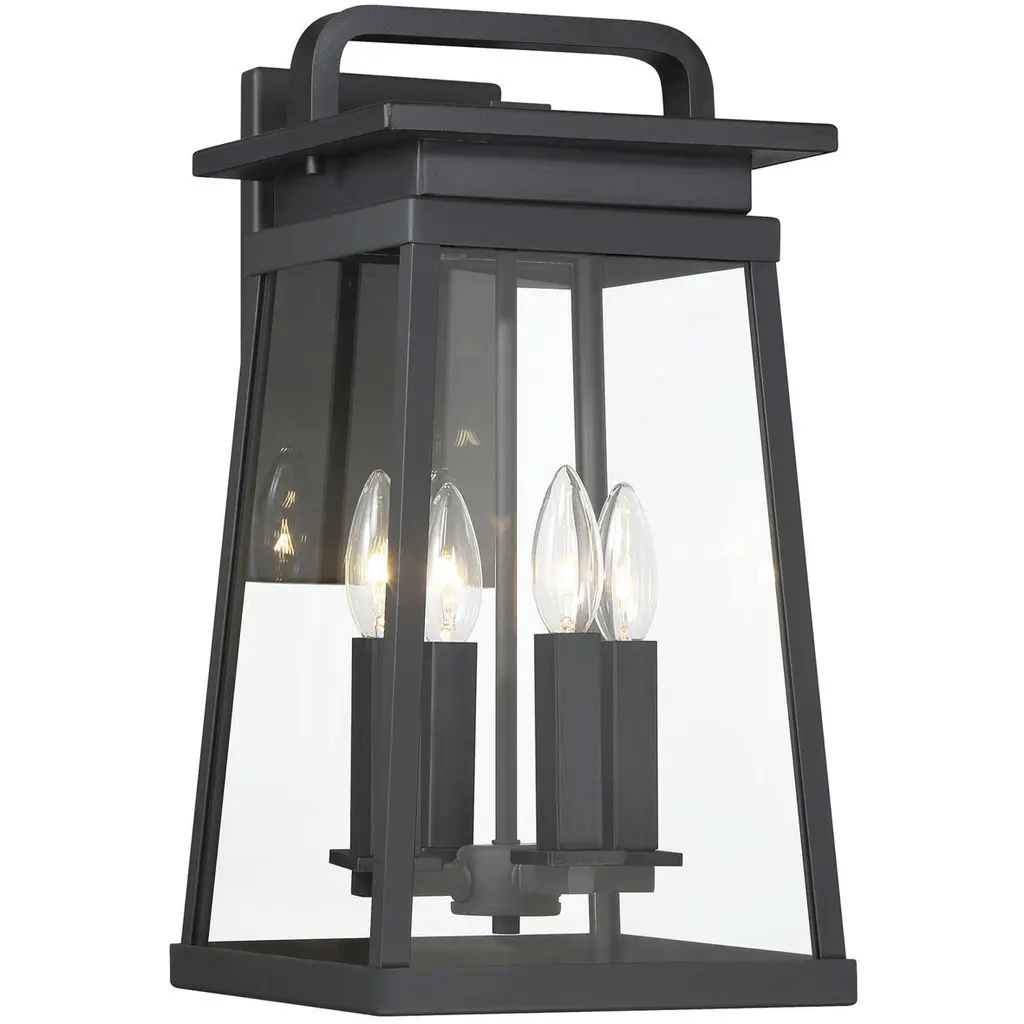 Collection: Princeton, Material: Brass, Finish Color: Black, Width: 9.5", Height: 15.25", Depth: 5.75", Height From Outlet Box: 7", Backplate Width: 5", Backplate Length: 6", Lamping Type: Incandescent, Number Of Bulbs: 2, Wattage: 60 Watts, Moisture Rating: Dry Rated, Desc: The Princeton collection is a fresh interpretation on the classic English pocket lantern. Hand crafted solid brass, our Princeton fixtures are built for lasting beauty. This outdoor wall light features an antique brass finish and clear glass. This old world charm is built to last. Shade Included: Yes. ,