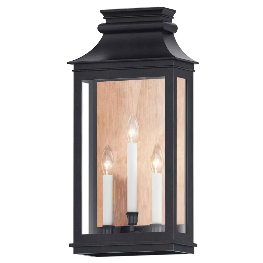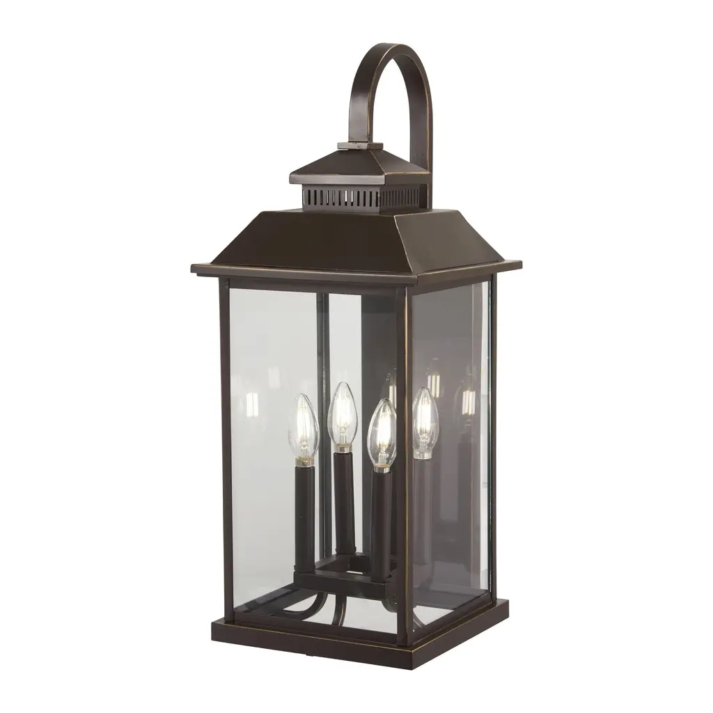 Collection: Princeton, Material: Brass, Finish Color: Bronze, Width: 7.5", Height: 14", Depth: 5.75", Height From Outlet Box: 6.63", Backplate Width: 4.75", Backplate Length: 7.5", Lamping Type: Incandescent, Number Of Bulbs: 2, Wattage: 60 Watts, Moisture Rating: Dry Rated, Desc: The Princeton collection is a fresh interpretation on the classic English pocket lantern. Hand crafted solid brass, our Princeton fixtures are built for lasting beauty. This outdoor wall light features an antique brass finish and clear glass. This old world charm is built to last. Shade Included: Yes. ,