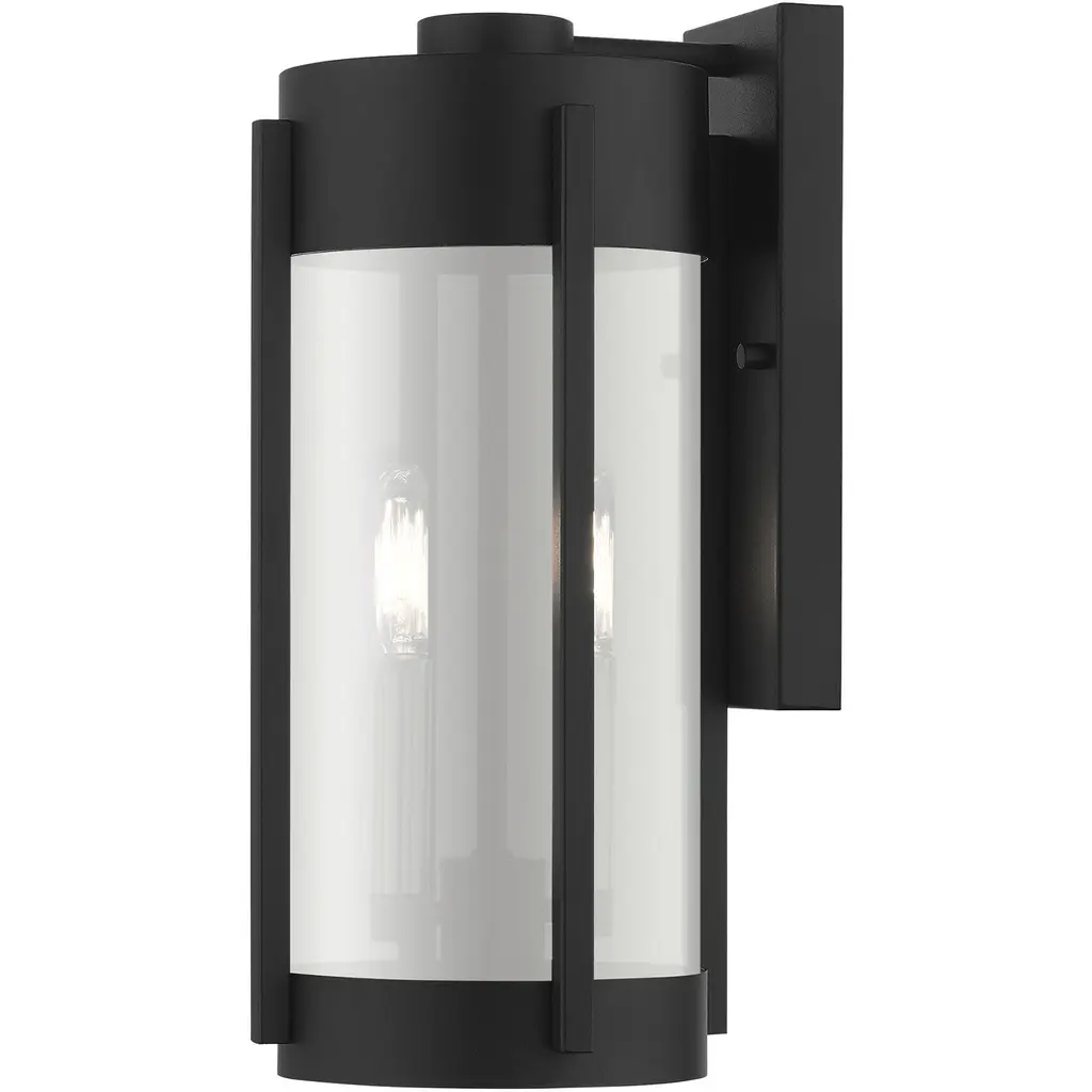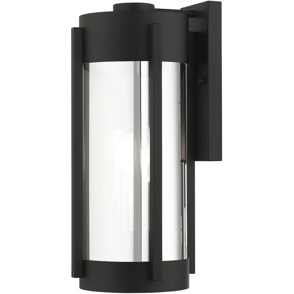 Collection: Sheridan, Material: Steel, Finish Color: Black/Brushed Nickel, Width: 8.5", Height: 18.75", Depth: 9.5", Height From Outlet Box: 5.25", Backplate Width: 4.5", Backplate Length: 10.5", Lamping Type: Incandescent, Number Of Bulbs: 3, Wattage: 60 Watts, Moisture Rating: Dry Rated, Desc: The Sheridan outdoor collection has a clean, crisp look and contemporary appeal. This three-light stainless steel large wall lantern has a black finish with brushed nickel finish candles and features electrical plated smoke glass. Mounting Direction: Up/Down / Shade Included: Yes. ,