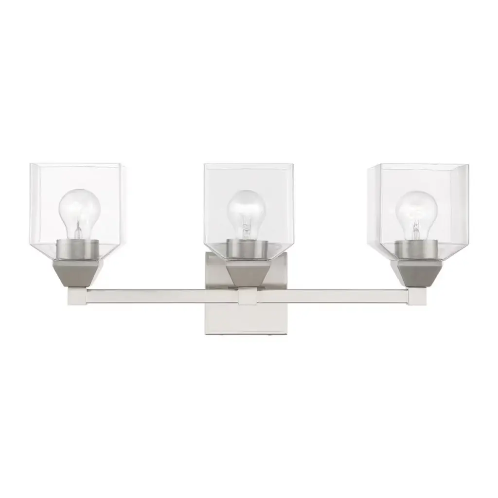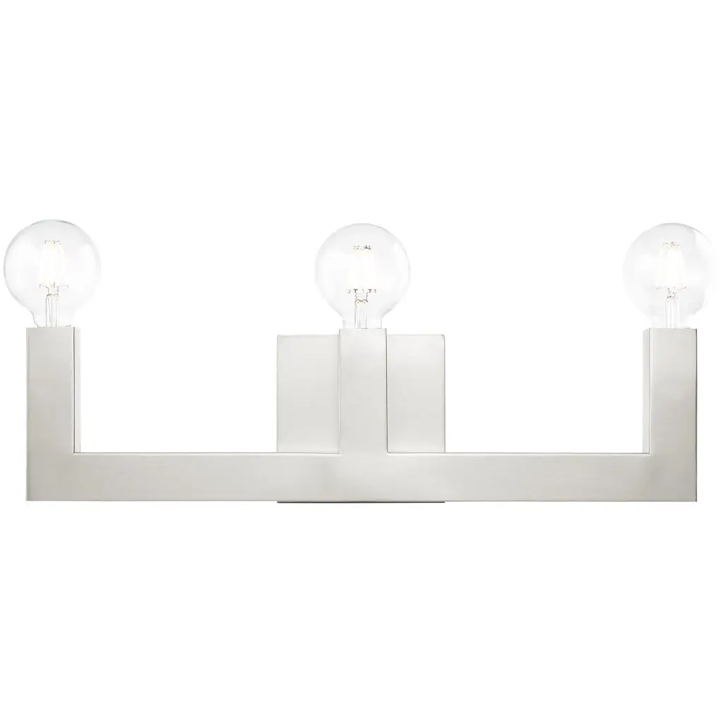 Collection: Solna, Material: Steel, Finish Color: Polished Chrome, Width: 21.5", Height: 5.63", Depth: 3.13", Height From Outlet Box: 2.88", Backplate Width: 5.5", Backplate Length: 1.5", Lamping Type: Incandescent, Number Of Bulbs: 3, Wattage: 60 Watts, Moisture Rating: Dry Rated, Desc: Less is more with this sleek minimalist styled bath vanity light from the Solna collection. With the polished chrome finish stainless steel square tubular arms, this three-light vanity sconce is the perfect fixture for adding modern pizzazz to your bath. Mounting Direction: Up/Down. ,