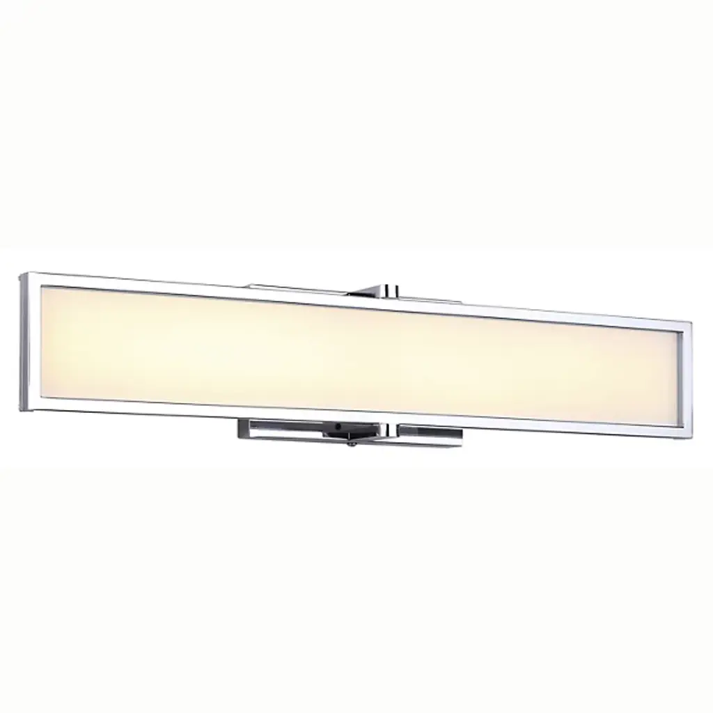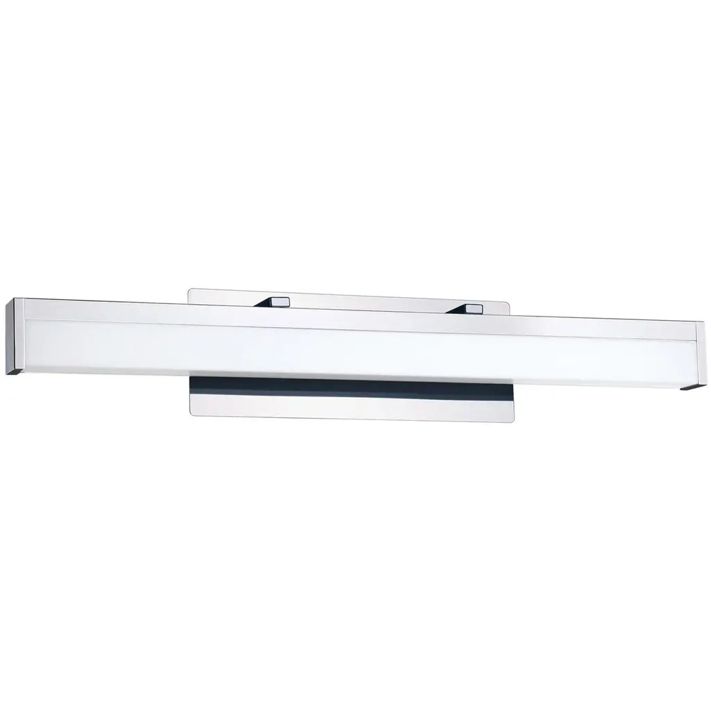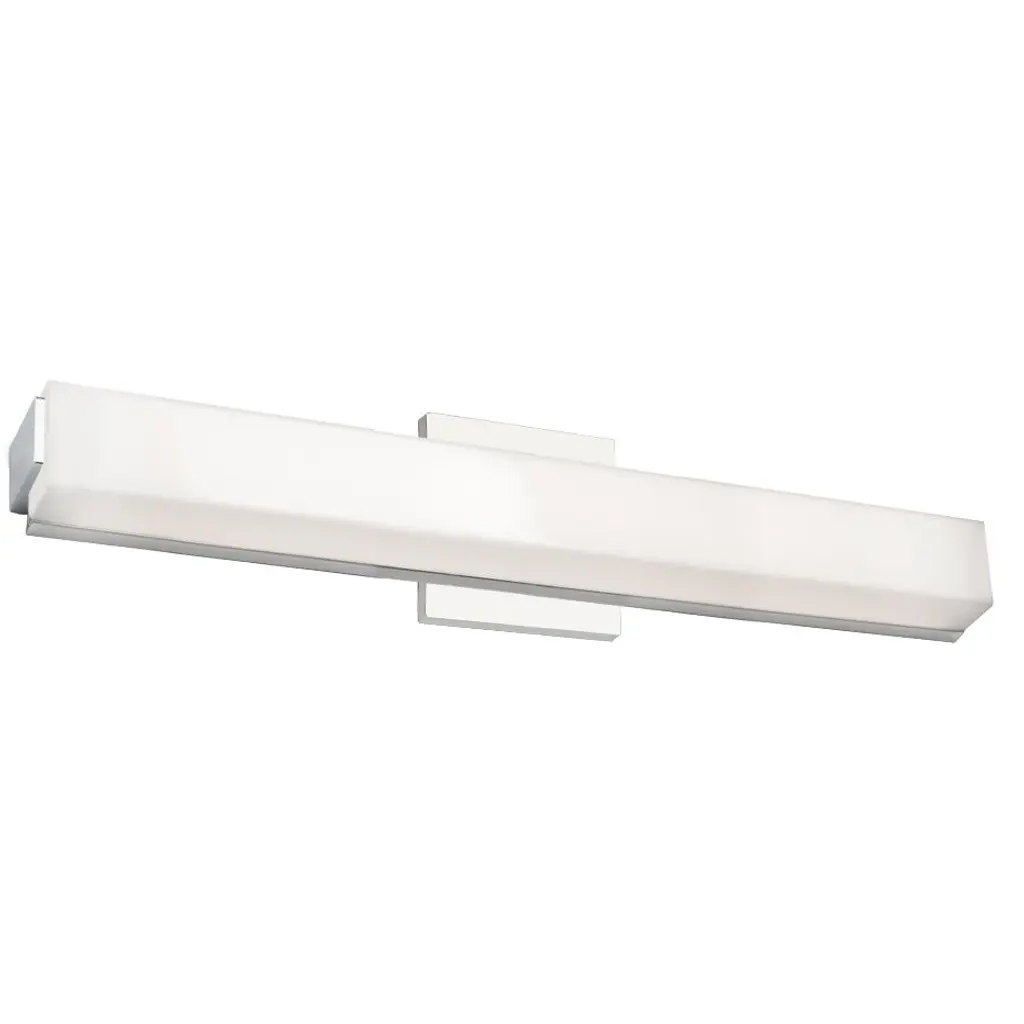 Collection: Soma, Material: Steel, Finish Color: Polished Chrome, Width: 23.5", Height: 5", Depth: 3.88", Height From Outlet Box: 11.75", Backplate Width: 5", Backplate Length: 0.25", Lamping Type: Incandescent, Number Of Bulbs: 3, Wattage: 60 Watts, Moisture Rating: Dry Rated, Desc: Inspired by the modern skyscraper design, the architectural lines of the Soma collection are truly suitable for urban and contemporary environments such as an industrial loft. The exposed bulbs make a beautiful accompaniment to the distinctive contrasting finishes of this rectilinear piece. This contemporary two light vanity sconce comes in a polished chrome finish with a shiny white finish inside. It fits perfectly in a minimalistic modern bathroom, hallway or living room. Mounting Direction: Up or Down / Shade Included: Yes. ,