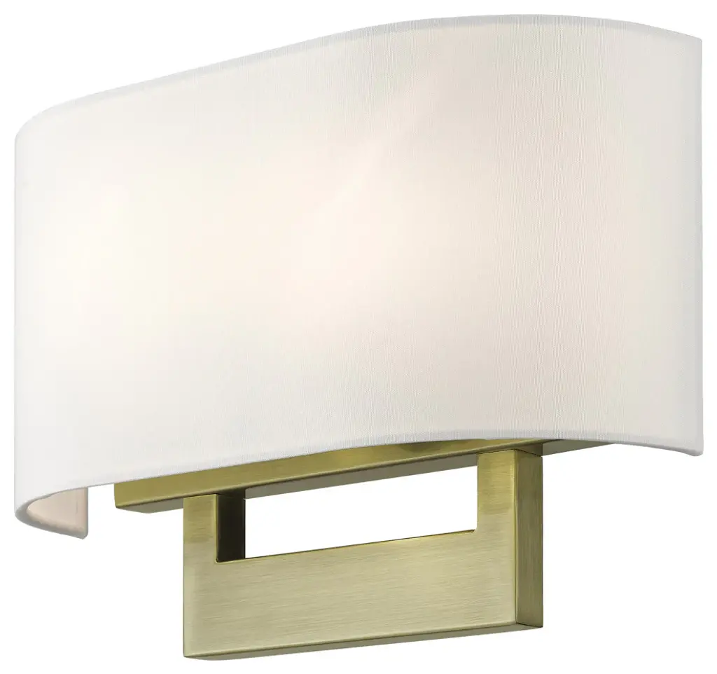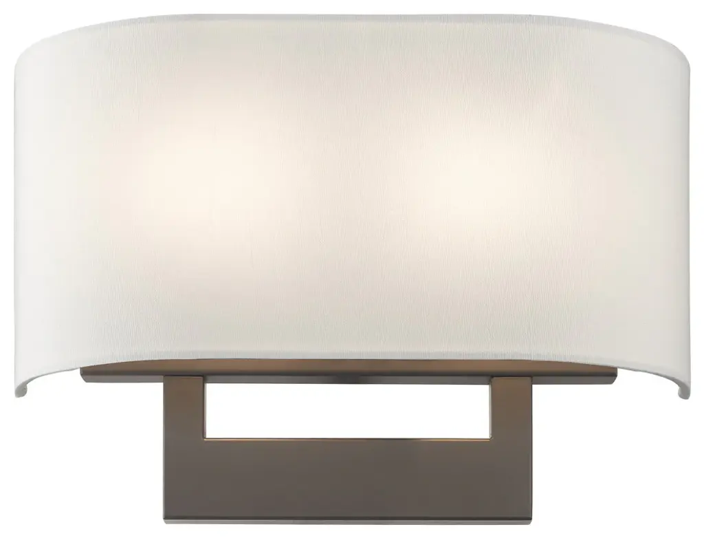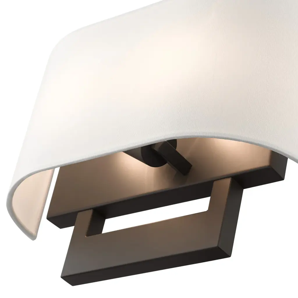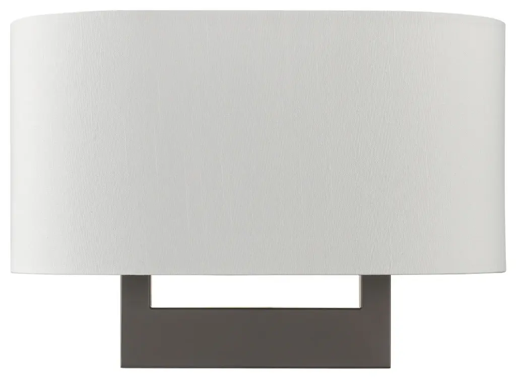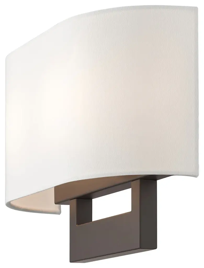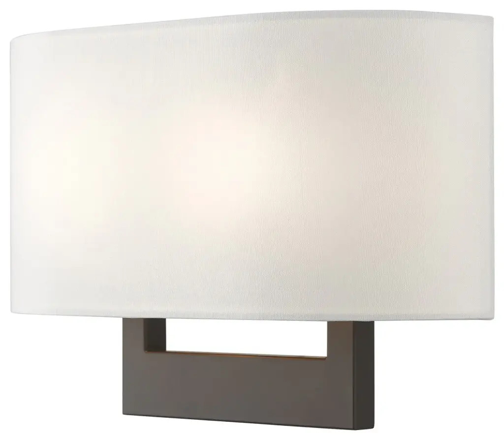 Raise the style bar with a designer medium ADA sconce in a handsome and versatile contemporary manner. This two light wall sconce comes in a bronze finish with a rectangular off-white fabric hardback shade.Number of Bulbs: 2Type of Bulb: Medium BaseMax Bulb Wattage: 40Bulbs Included: N