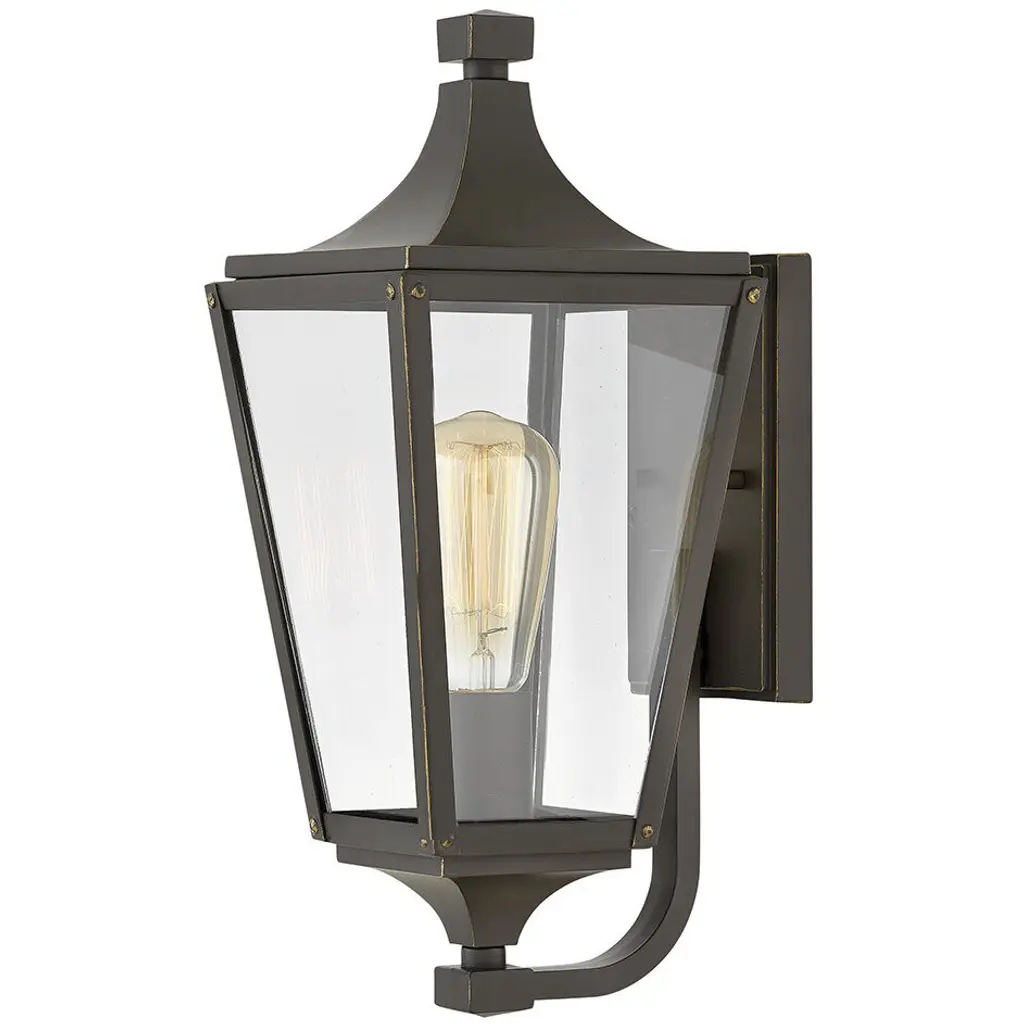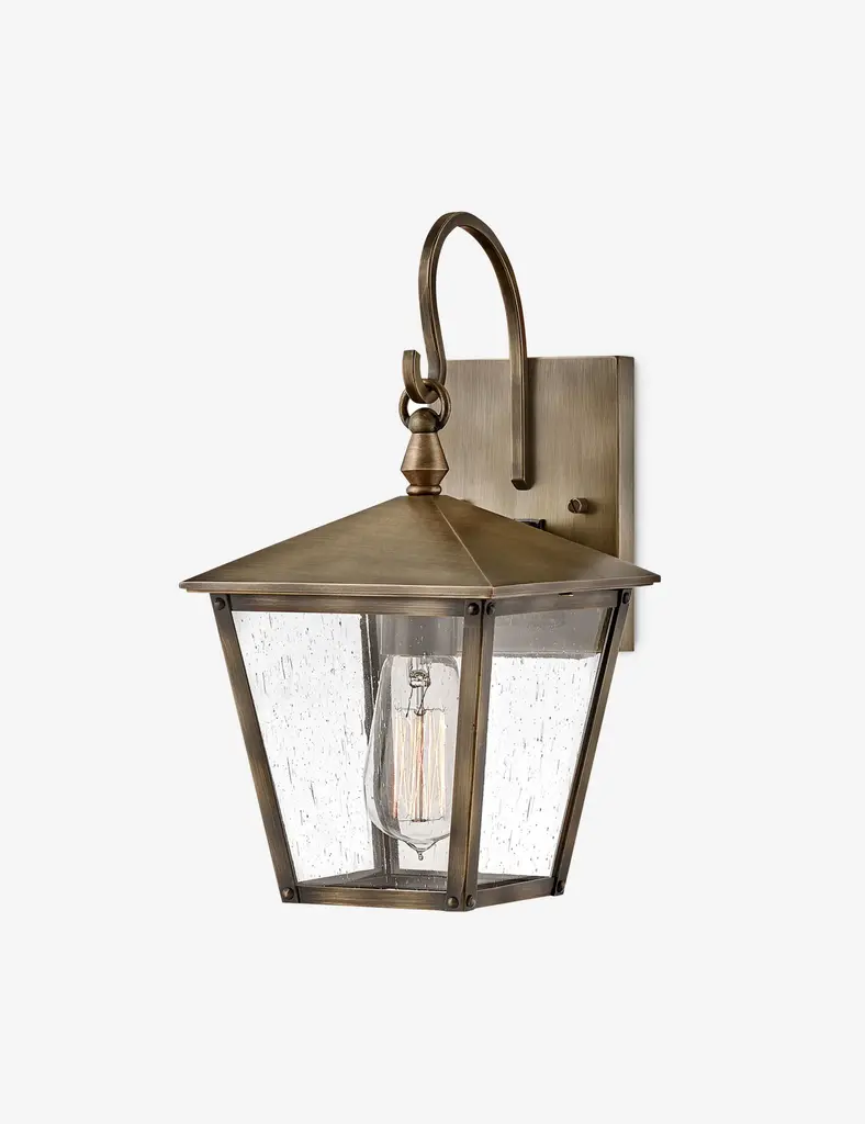 Collection: Westover, Material: Brass, Finish Color: Bronze, Width: 7", Height: 12.5", Depth: 7.5", Height From Outlet Box: 6", Backplate Width: 4.75", Backplate Length: 6", Lamping Type: Incandescent, Number Of Bulbs: 1, Wattage: 100 Watts, Moisture Rating: Dry Rated, Desc: Inspired by the historic look and romantic feel of gas-burning lamps, our Westover collection is reminiscent of antique gas lights, which are still popular in Southern cities like Charleston and New Orleans. This solid brass piece features one light behind large panes of clear beveled glass. Shade Included: Yes. ,