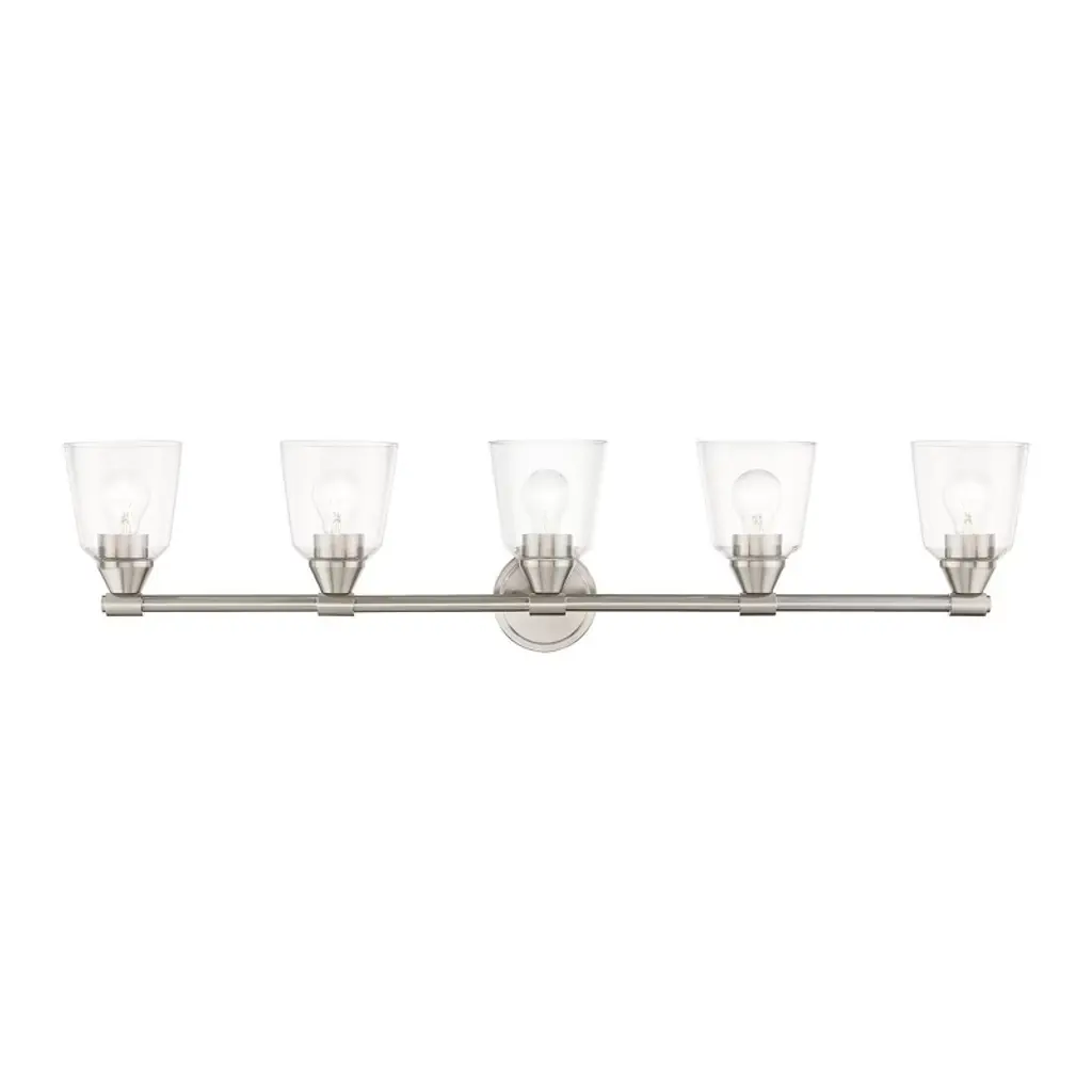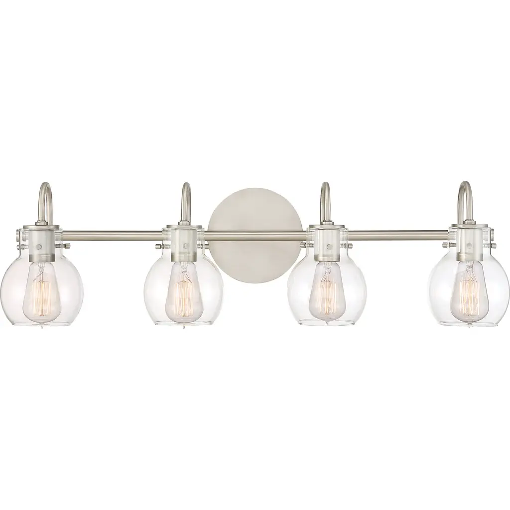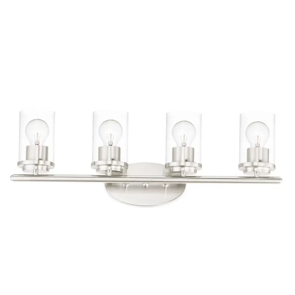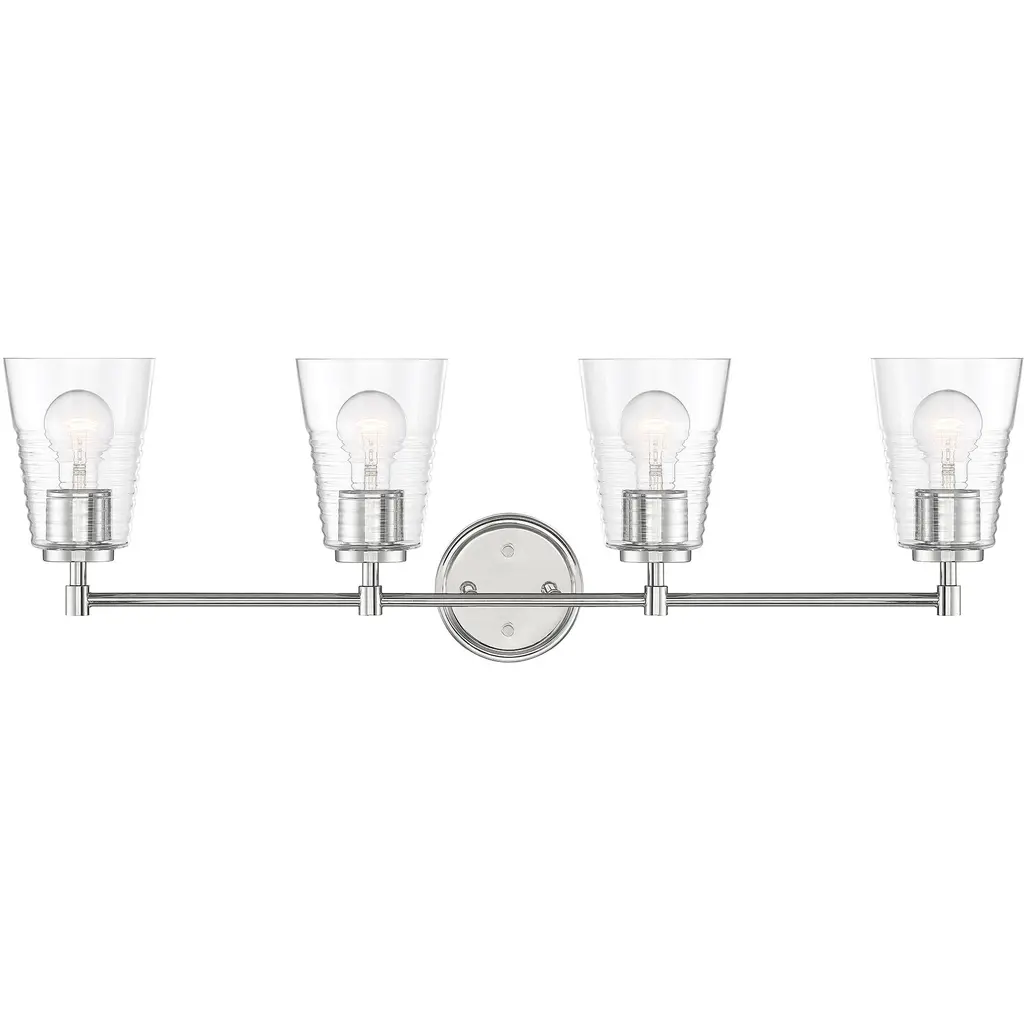 Collection: Willow, Material: Steel, Finish Color: Polished Chrome, Width: 35.5", Height: 9.5", Depth: 6.5", Height From Outlet Box: 7.13", Backplate Width: 4.75", Backplate Length: 0.75", Lamping Type: Incandescent, Number Of Bulbs: 4, Wattage: 60 Watts, Moisture Rating: Dry Rated, Desc: This four light vanity sconce from the willow collection has understated elegance. It features minimal details, clear curved glass with a polished chrome finish and can fit into any decor.,
