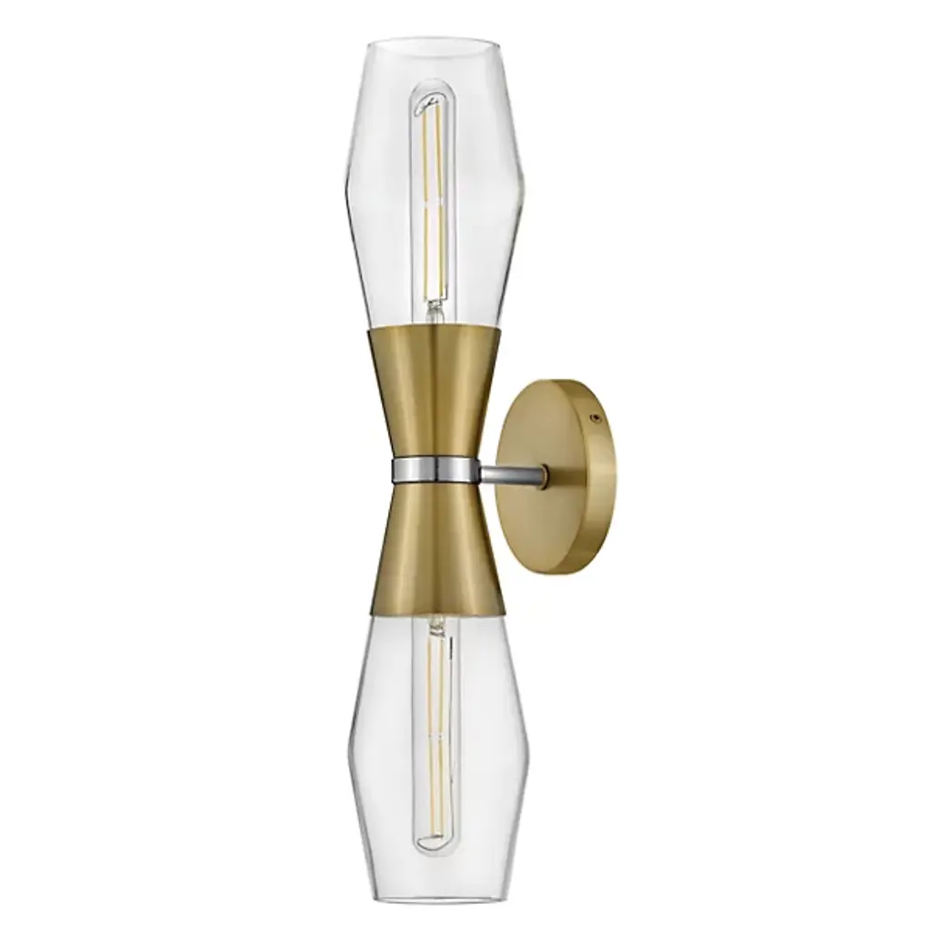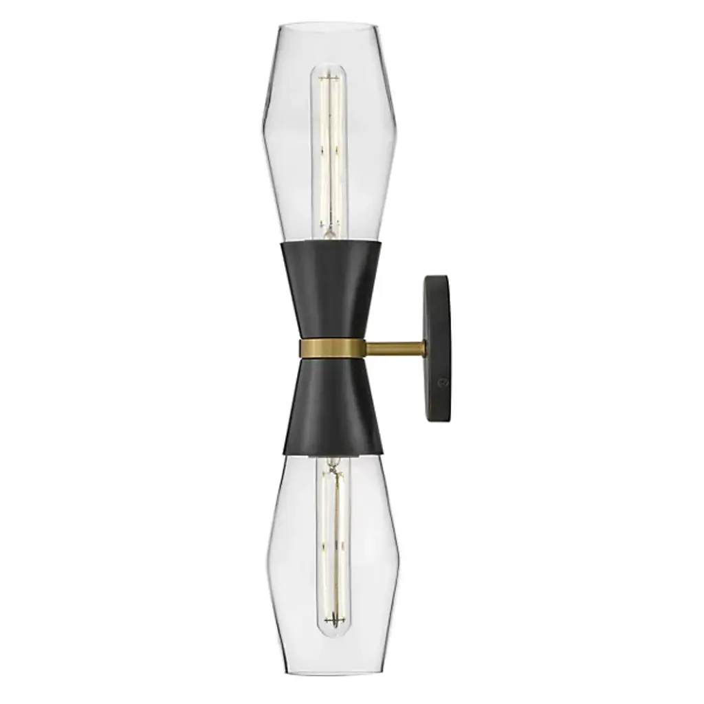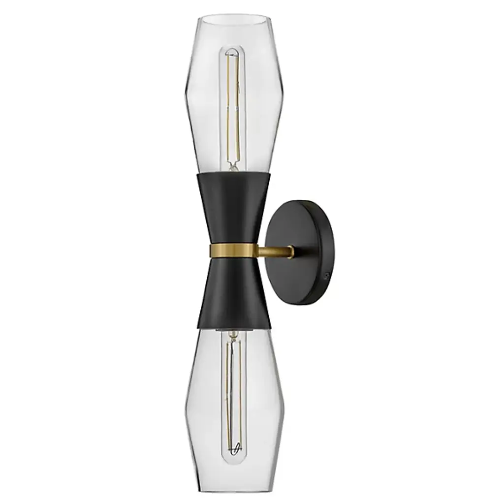 The Livie Wall Sconce from Lark features a pair of contoured shades shaped as mirror images of each other, creating a visually captivating and balanced design. Crafted from durable steel, Livie offers style and durability. Illuminate your space with sophistication, as the refined shades are made of glass, providing a soft and inviting glow. Secured by a streamlined arm and a backplate at your wall, this sconce is dimmable when used with a separately sold ELV dimmer.