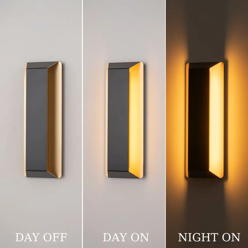This minimalist hollow box LED outdoor wall light combines sleek modern design with powerful, warm illumination. Measuring 13 4/5 inches long, 4 7/10 inches wide, and extending 3 1/10 inches from the wall, this fixture fits seamlessly into patios, porches, or entryways with limited space. It features a high-voltage 16W LED emitting 3000K warm white light with a CRI of 80, producing 960 lumens of bright yet cozy illumination. The light is compatible with 110V wall dimmer switches, allowing you to customize brightness to match different moods or outdoor activities. Crafted from durable metal, it withstands outdoor weather conditions while maintaining a clean and contemporary appearance, making it an excellent choice for modern exterior lighting needs.