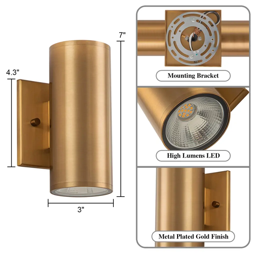 Llhzsy 2-light 7" Modern Industrial Led Outdoor Wall Light Fixture-gold-3000k Warm Light