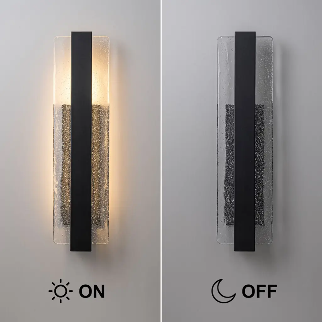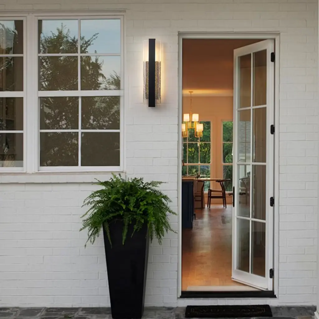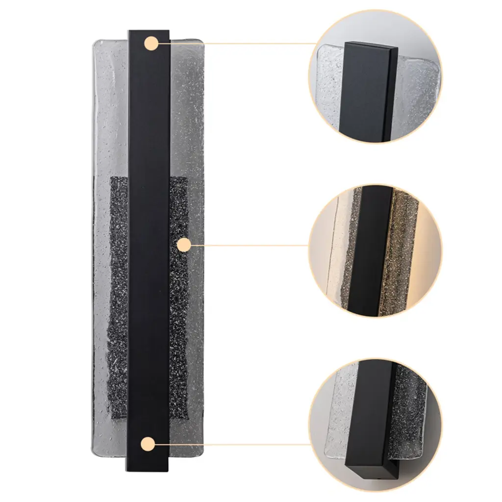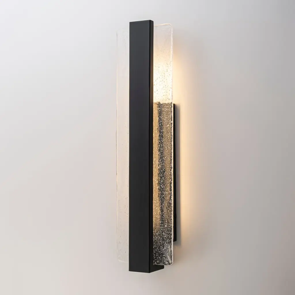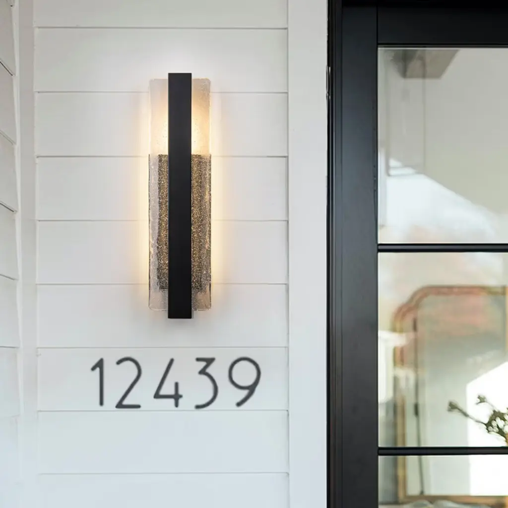 Elevate your exterior lighting with this premium oversized LED wall light featuring artisan-crafted bubble ice glass. Measuring 5 9/10 inches in length, 3 1/2 inches in wall depth, and 23 inches in height, the fixture boasts a stunning 22 inch tall glass panel with embedded bubbles that shimmer when lit. Powered by a 20W high-voltage LED, it emits a 3000K warm white glow with a brightness of 2000 lumens and a high CRI of 90, providing exceptional color clarity. The light is fully dimmable via wall switch, offering flexible ambiance control. Its iron structure and IP54 rating ensure weather-resistant performance, making it perfect for upscale residential or commercial exteriors. Whether used on patios, porches, or exterior entryways, this light adds both brilliance and architectural style to any space.