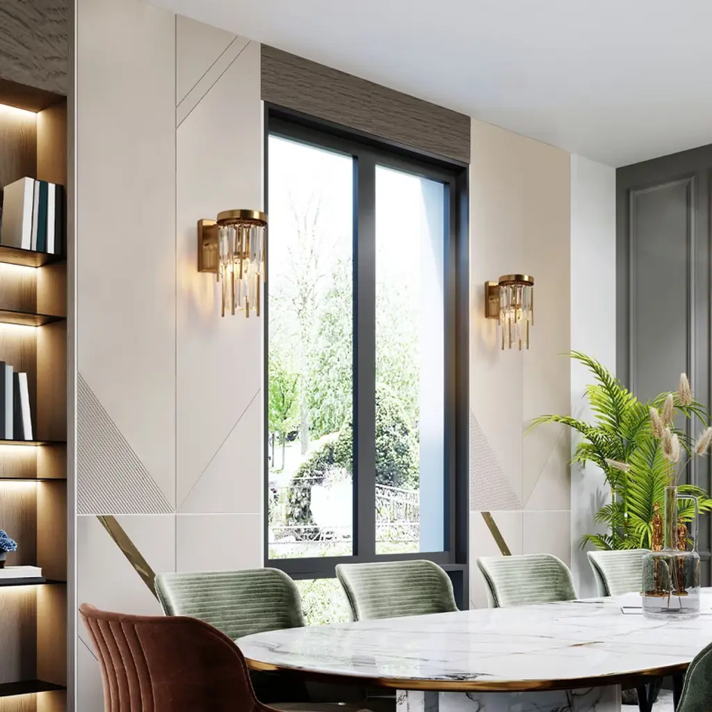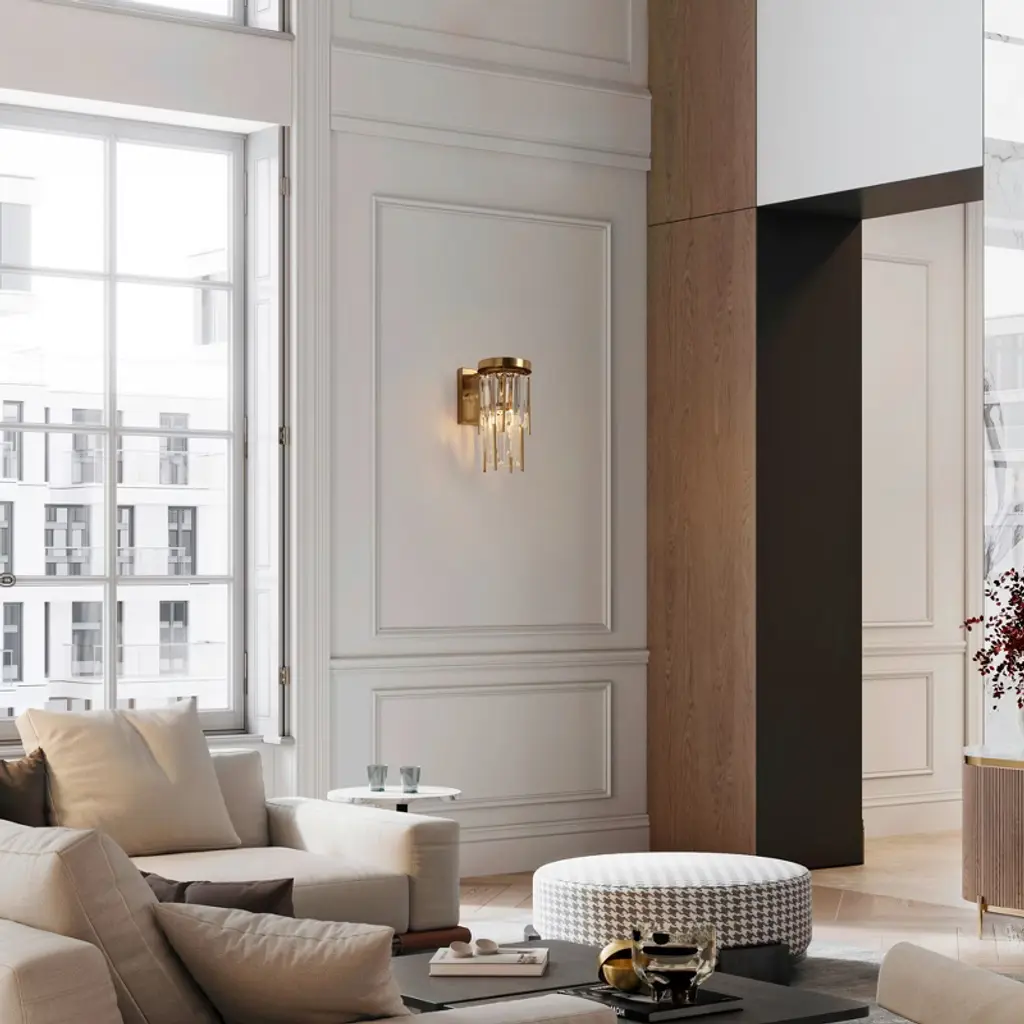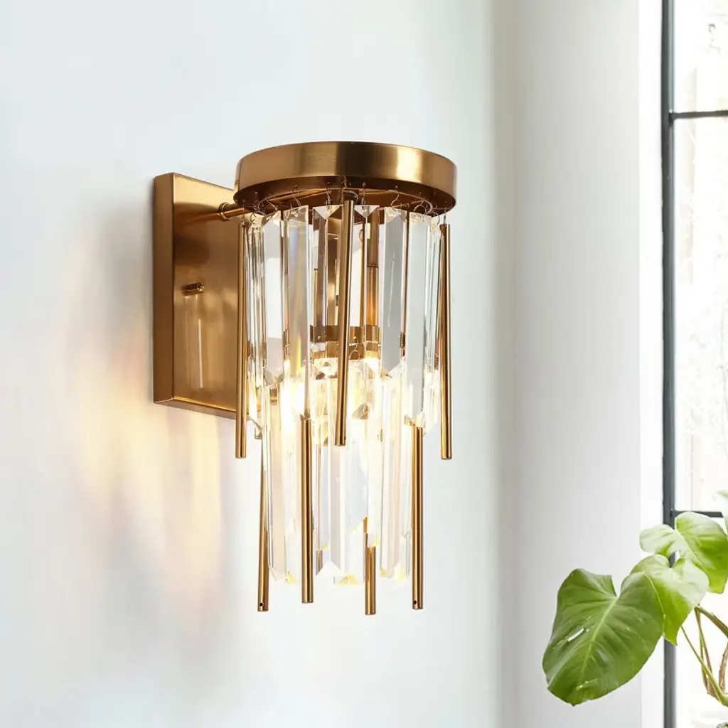 Step into a world of enchantment with our 1-Light Plating Brass with Crystal Modern/Contemporary LED Wall Sconce. A captivating cascade of crystal and metal rods creates a dazzling display of light, reminiscent of rainfall frozen in time. With hundreds of slender tubes suspended asymmetrically from a sleek canopy, this wall sconce casts a refractive glow that adds a touch of drama and elegance to any space. Illuminate your home with sophistication and style, transforming your walls into a breathtaking work of art.
