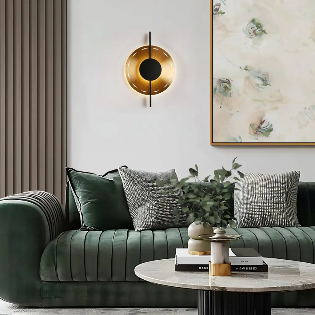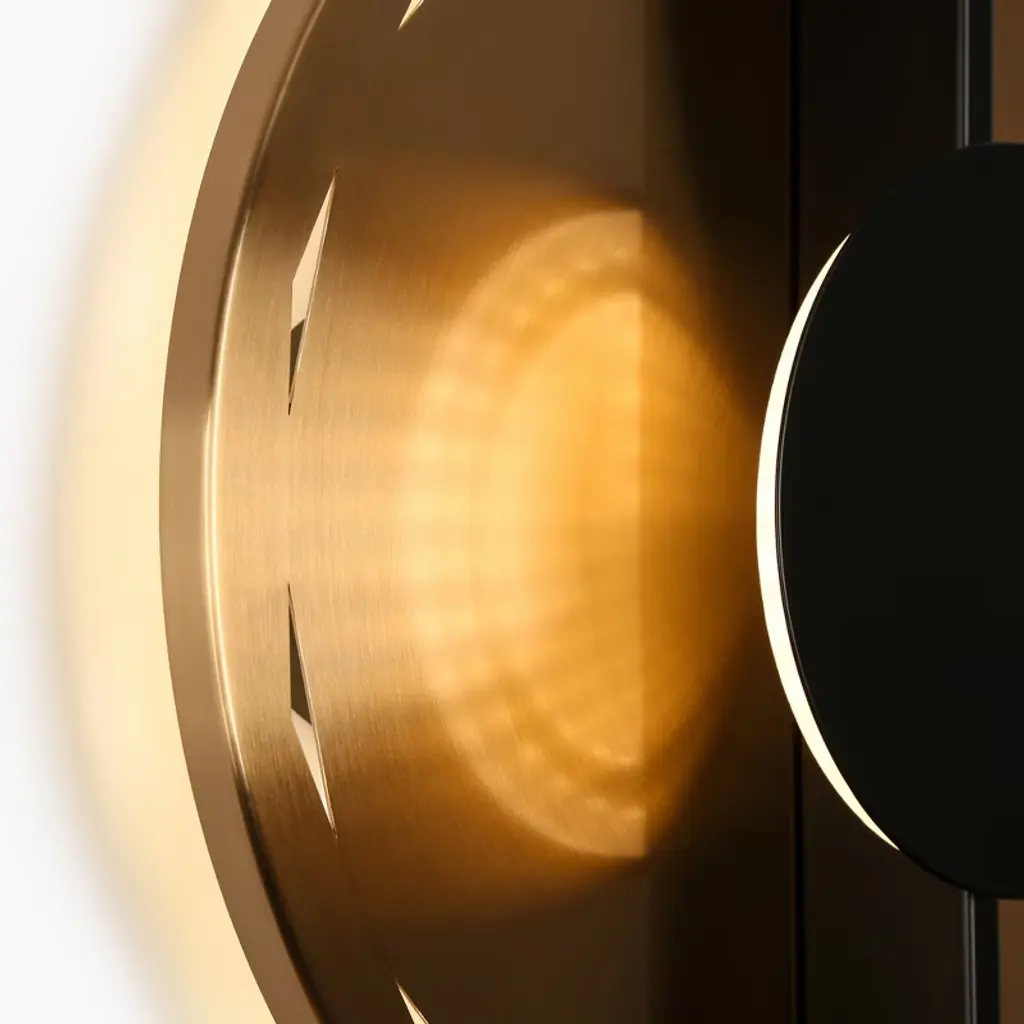 Inspired by classic vinyl records, this stunning wall sconce blends retro charm with modern craftsmanship. The electroplated brass finish exudes elegance, while the matte black linear accents add a bold contrast. A built-in LED bulb ring encircles the center, diffused through a frosted acrylic cover to cast a soft, inviting glow. Perfect for adding a nostalgic yet sophisticated touch to any space—where vintage aesthetics meet contemporary lighting.