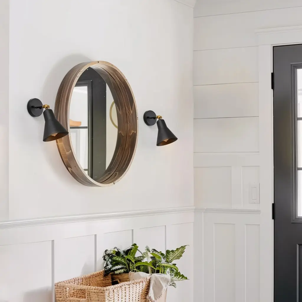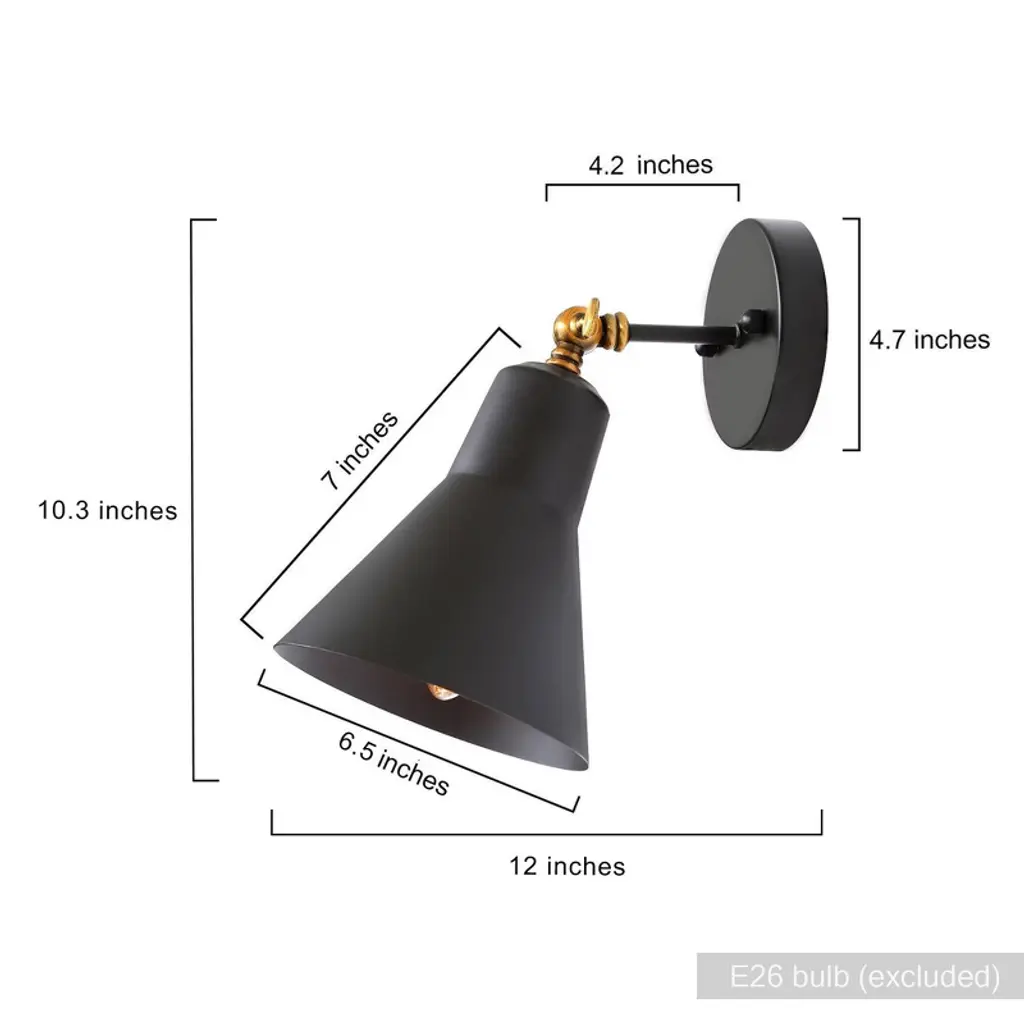 Add focused task lighting with sleek style using this adjustable black wall sconce. Featuring a matte black finish with a subtle brass accent at the pivot point, this cone-shaped sconce offers both visual contrast and flexible functionality. The angled shade directs light precisely where you need it,perfect for bedside reading, hallway accents, or workspace illumination. Its compact design and articulating arm make it a versatile choice for modern, industrial, or minimalist interiors.